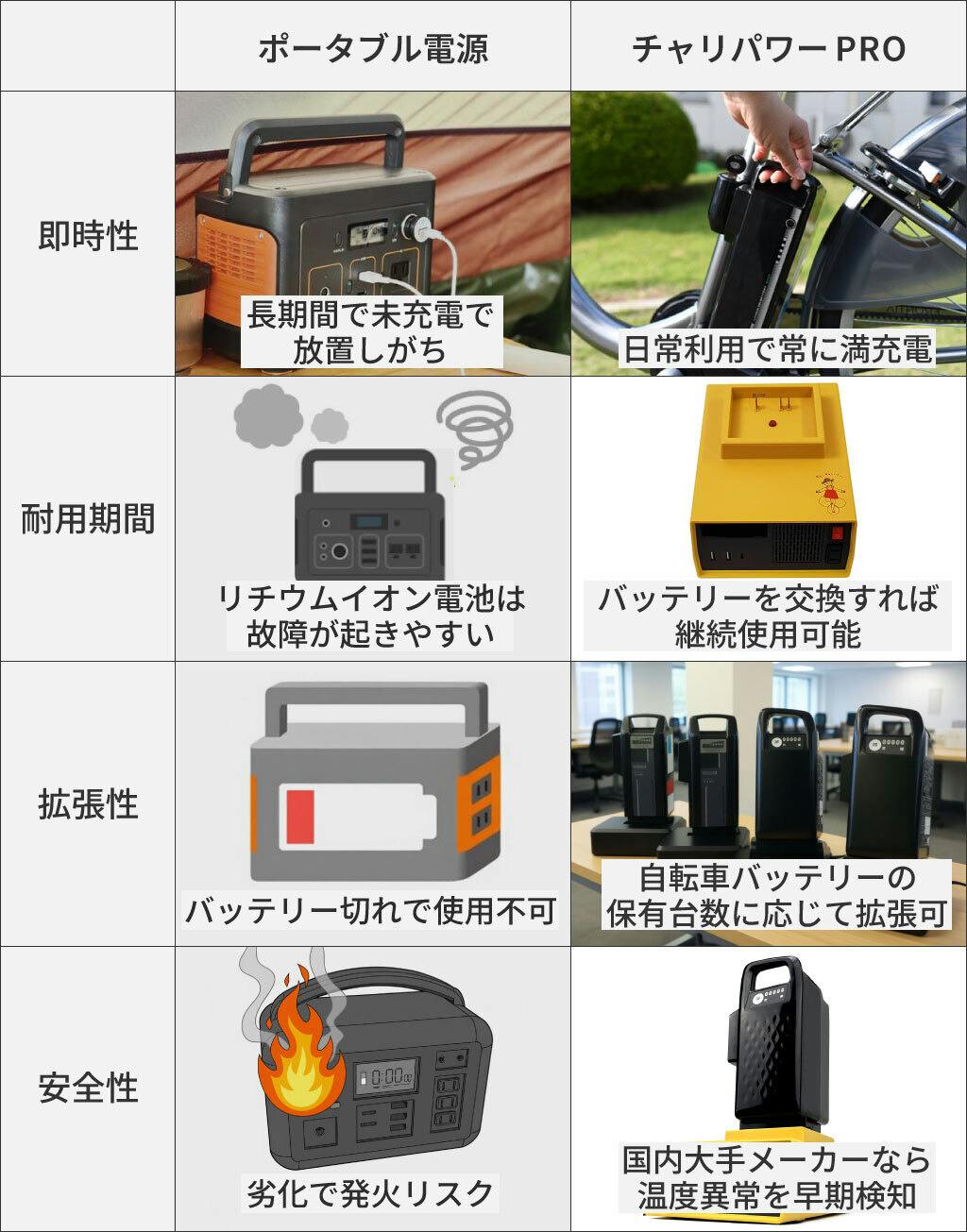 「ポータブルバッテリーは重くて携帯しにくい」「海外製は事故が心配」「コストがかかる」