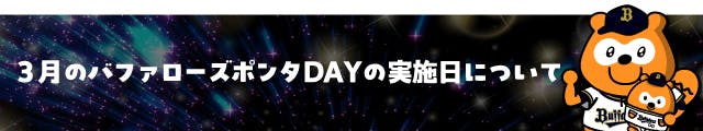 ※3月のバファローズ☆ポンタDAYの実施日は3/22(日)に決定いたしました。(12/23更新)