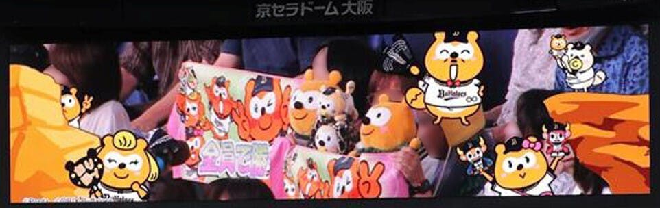 バファローズ☆ポンタグッズが一斉に掲げられ、