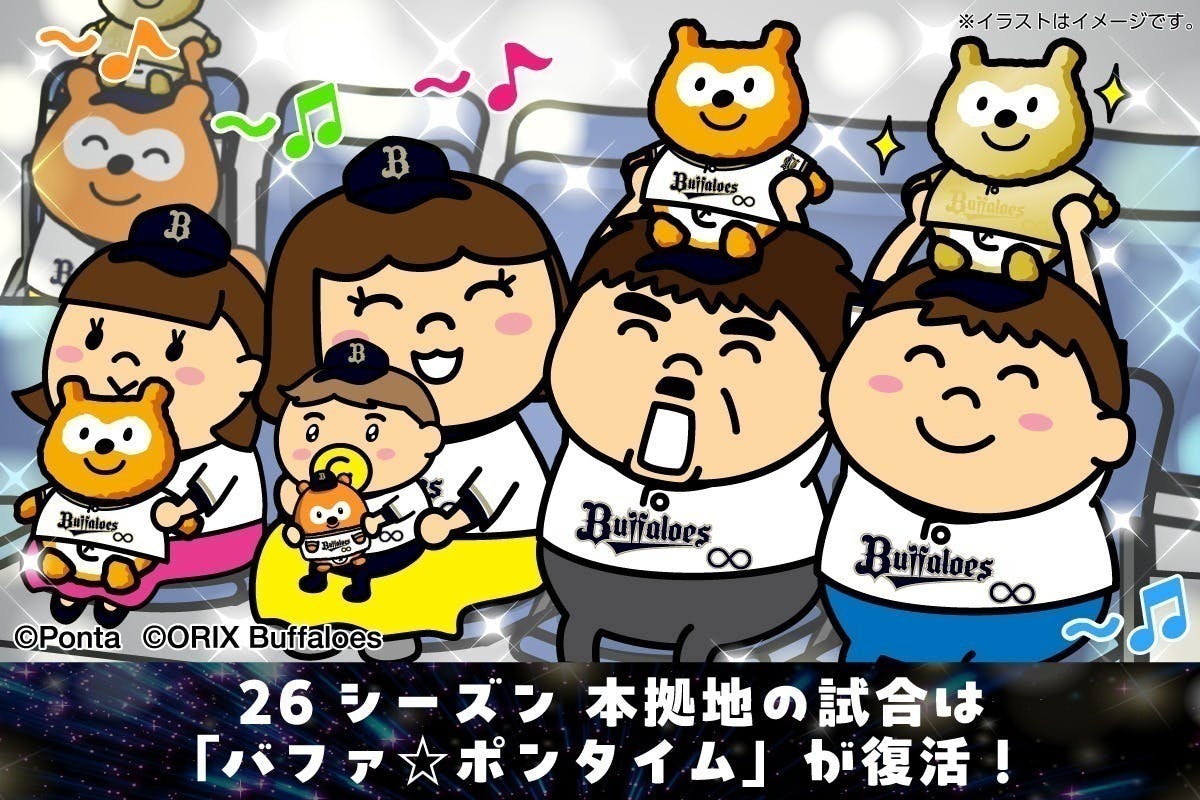 ※「バファ☆ポンタイム」とは2026シーズン、オリックス・バファローズが主催する京セラドーム大阪における公式戦でのイニング間イベントを指します。名称は仮称です。後日変更になる場合がございます。
