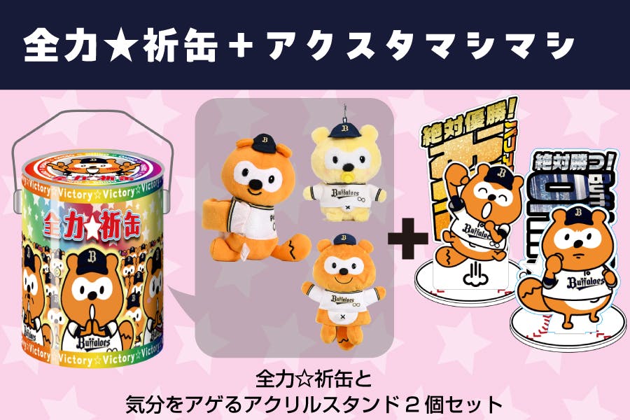 実物を確認すると、 発色の良さやカットのきれいさ、台座とのバランスまで含めて、 完成度の高さを実感できる仕上がりでした。 スタッフの間からも「いい感じ!」と声が上がっています。全力で応援するバファローズ☆ポンタの表情が、 そのまま形になったようなアクリルスタンドで、 お部屋やデスクに置いても存在感のあるアイテムになっています。「全力☆祈缶」限定のアクリルスタンドとなりますので、 少しでも気になった方は、この機会をお見逃しなく。▽全力☆祈缶(アクリルスタンド1種)