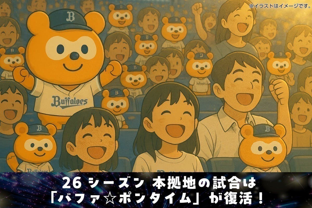 ※「バファ☆ポンタイム」とは2026シーズン、オリックス・バファローズが主催する京セラドーム大阪における公式戦でのイニング間イベントを指します。名称は仮称です。後日変更になる場合がございます。