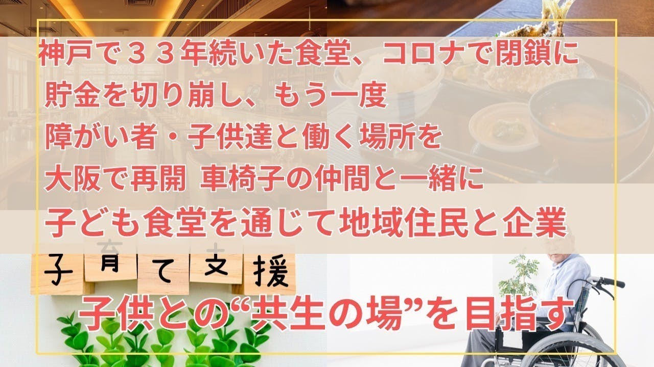その方とももう35年のお付き合いになりました。車椅子の仲間と一緒に大阪でまた食堂を再開したく