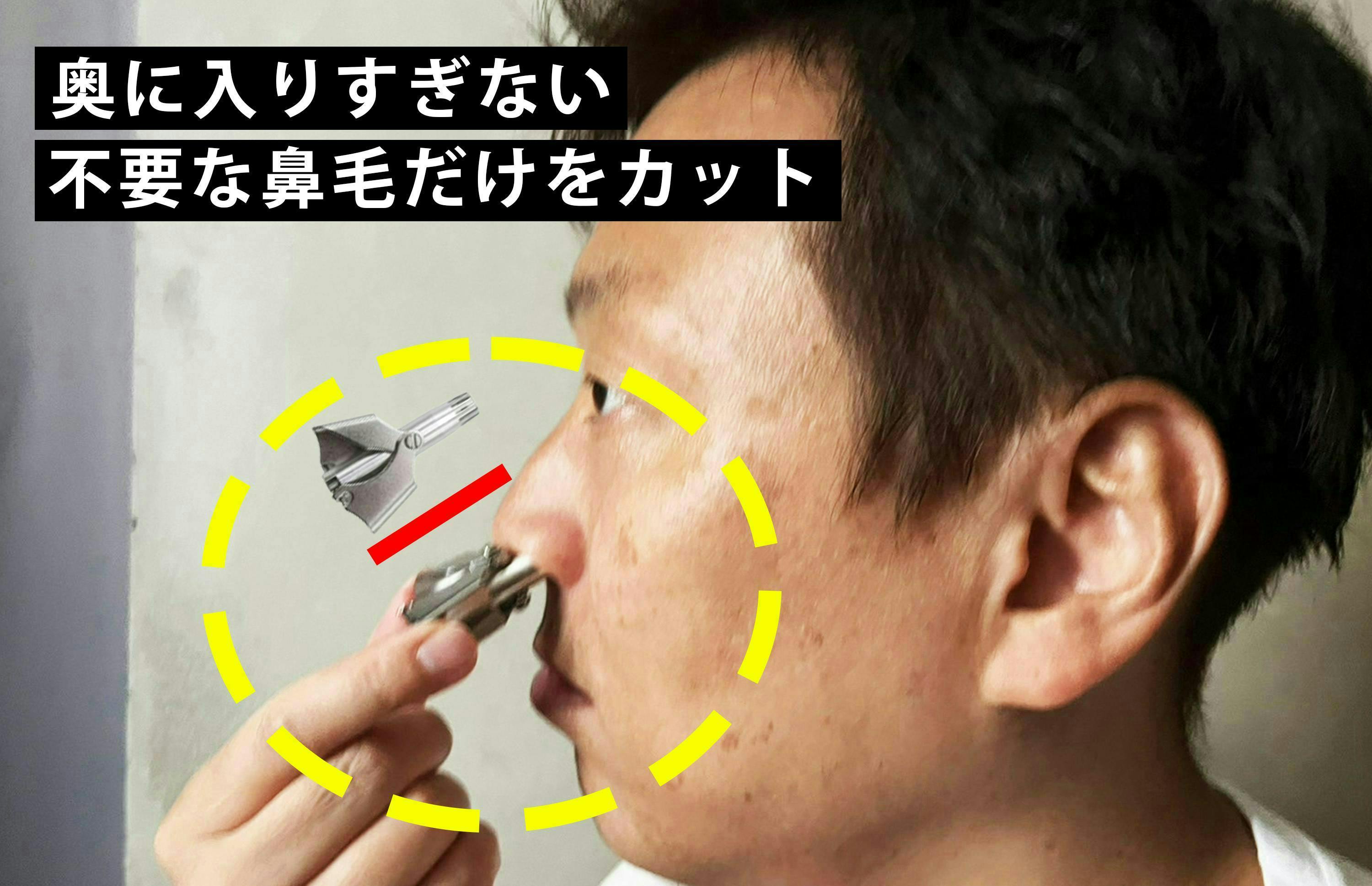 奥の必要な鼻毛はカットしない、奥に入らない仕様で安心安全。不要な鼻毛だけカットするので、毛根も傷めず、鼻毛の機能も失わない!
