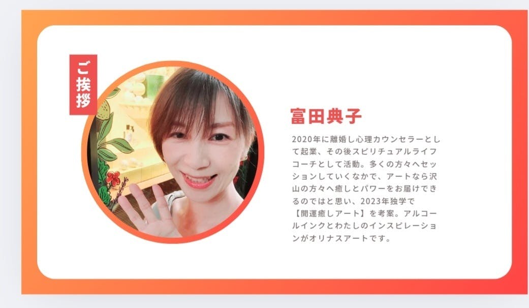 こんにちは、私は富田典子と申します。2020年に離婚を決意シングルマザーとしてスピリチュアルライフコーチとして起業をスタート。なかなか生活も不安定が続き経済状況も悪い状況を繰り返していました。