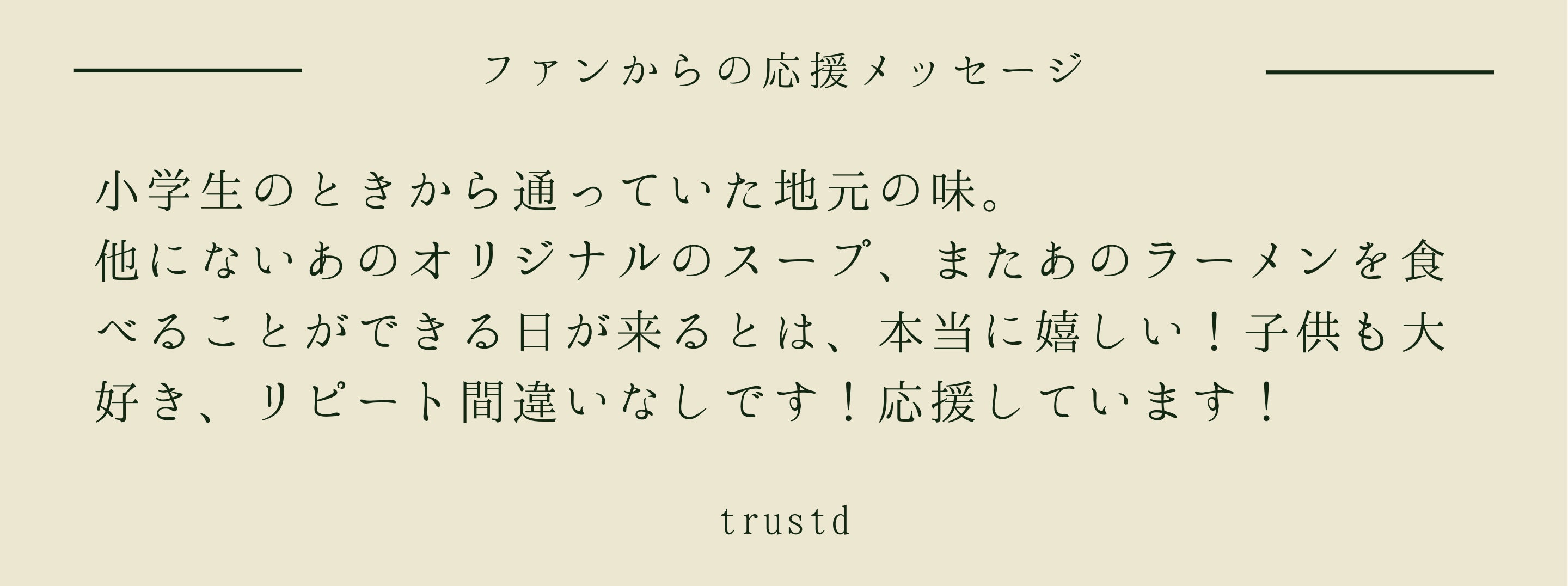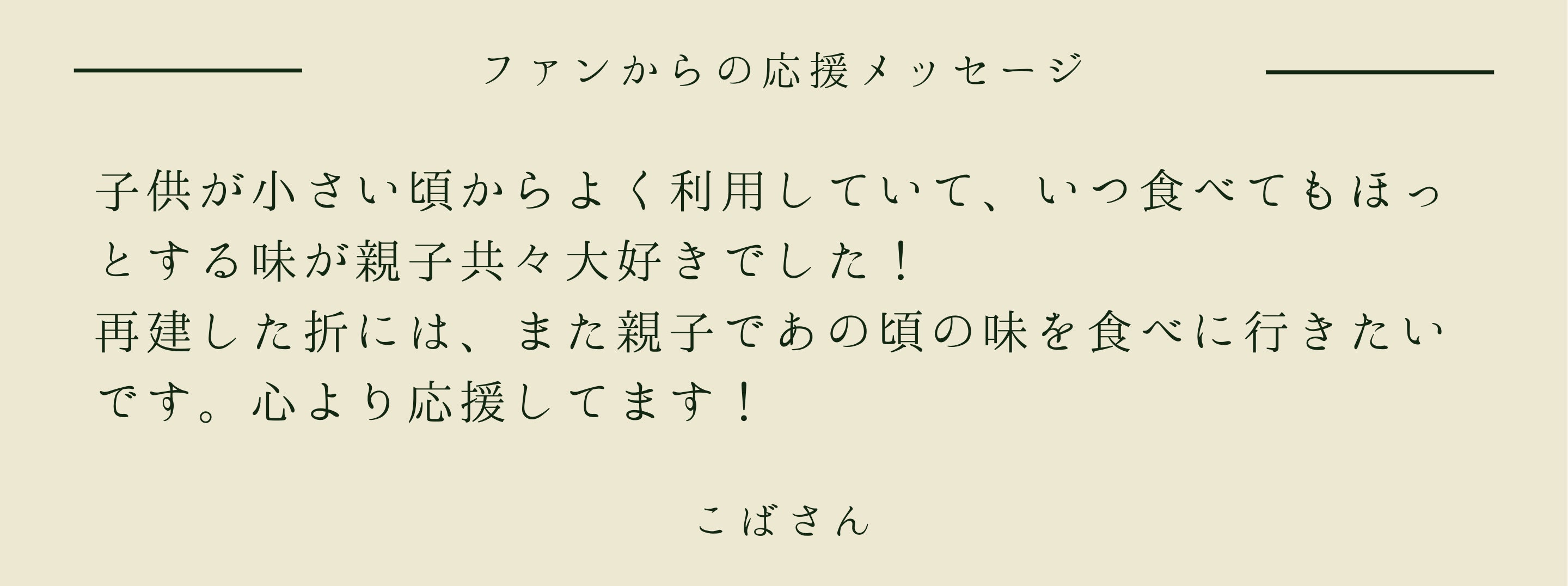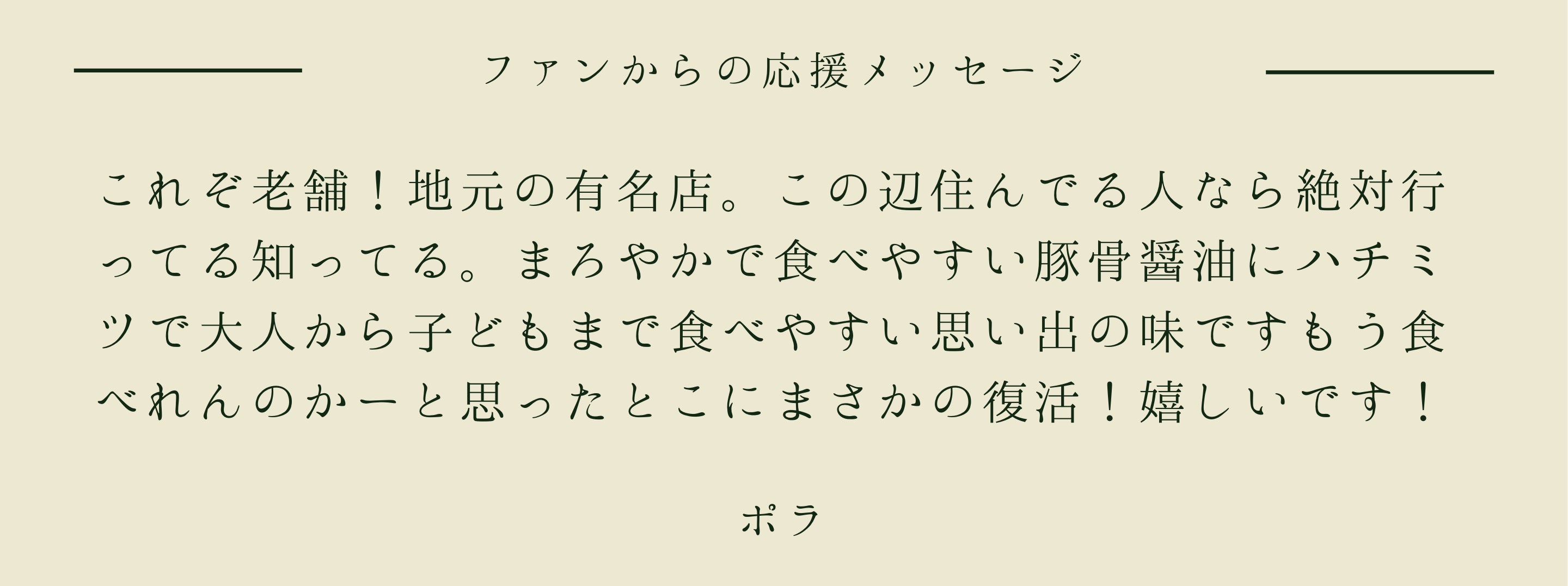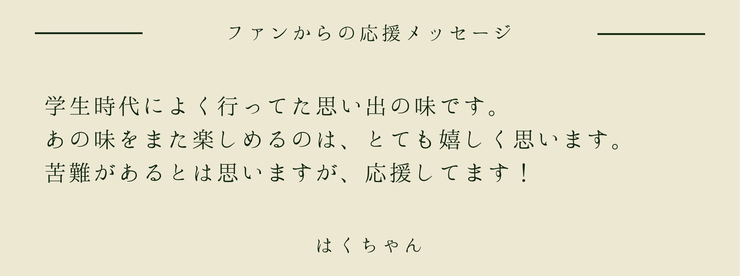 この声は本当に嬉しいことで、あの味を復活をさせたいと思っていた私たちの背中を押してくれました!