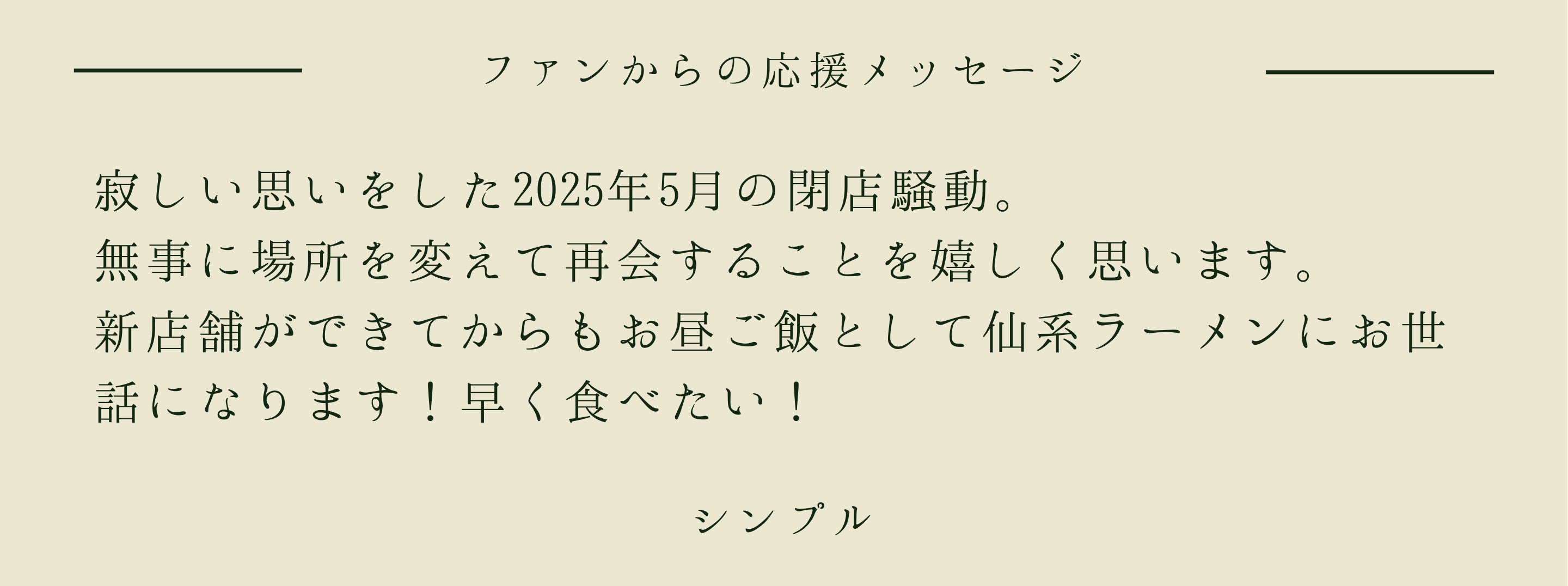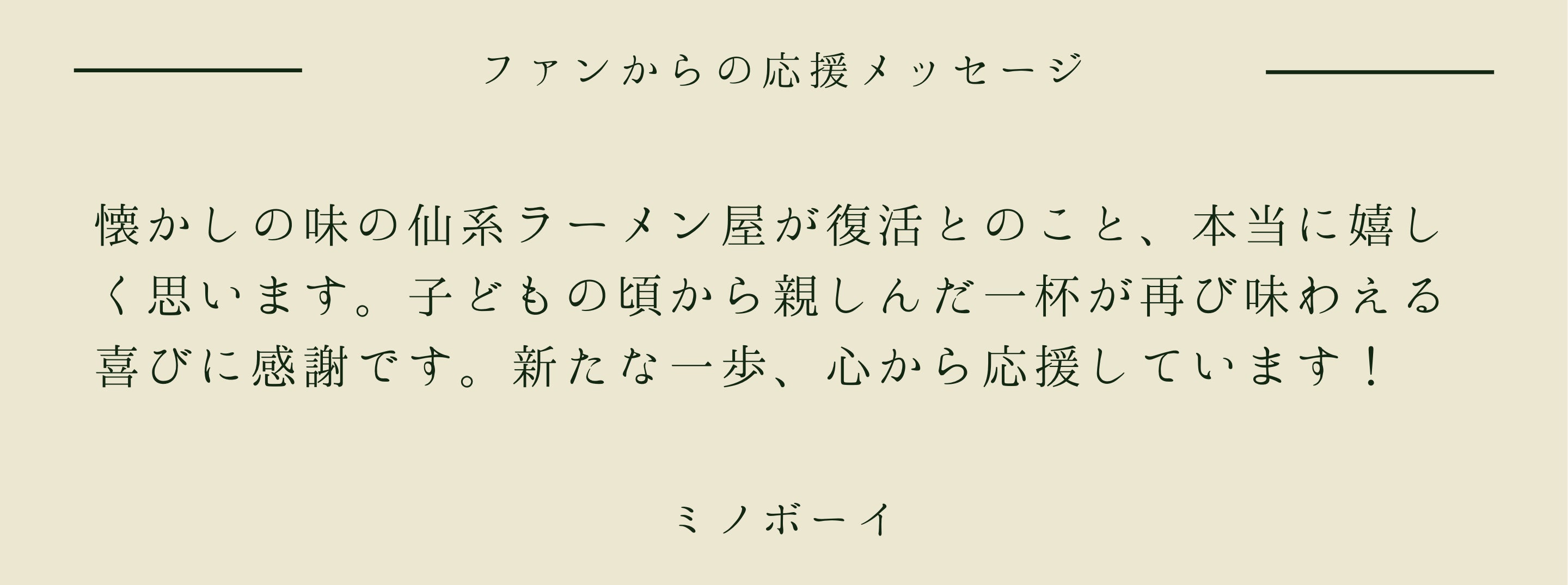 『やっぱりもう一回あの味を、仙系ラーメンを食べてもらいたい』