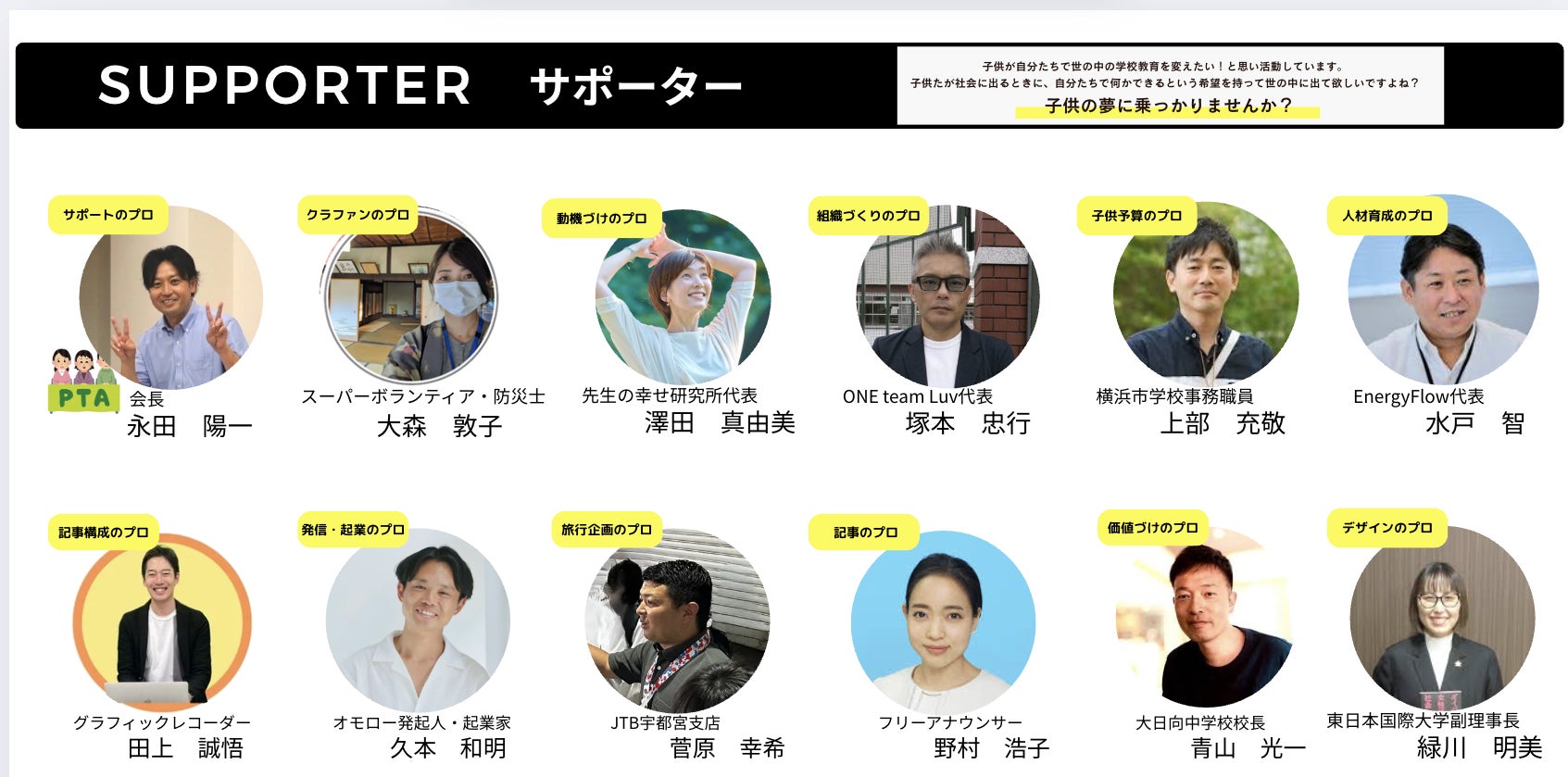 この挑戦で、子供達に体験してもらいたいことは、「世の中(社会)を変える力がみんなにあること」「世の中は大変ではなくて、自分の意思で何でもできること」つまり、「社会に出ることは、希望と可能性しかない」と体験して世の中に入ってほしいと思っています。