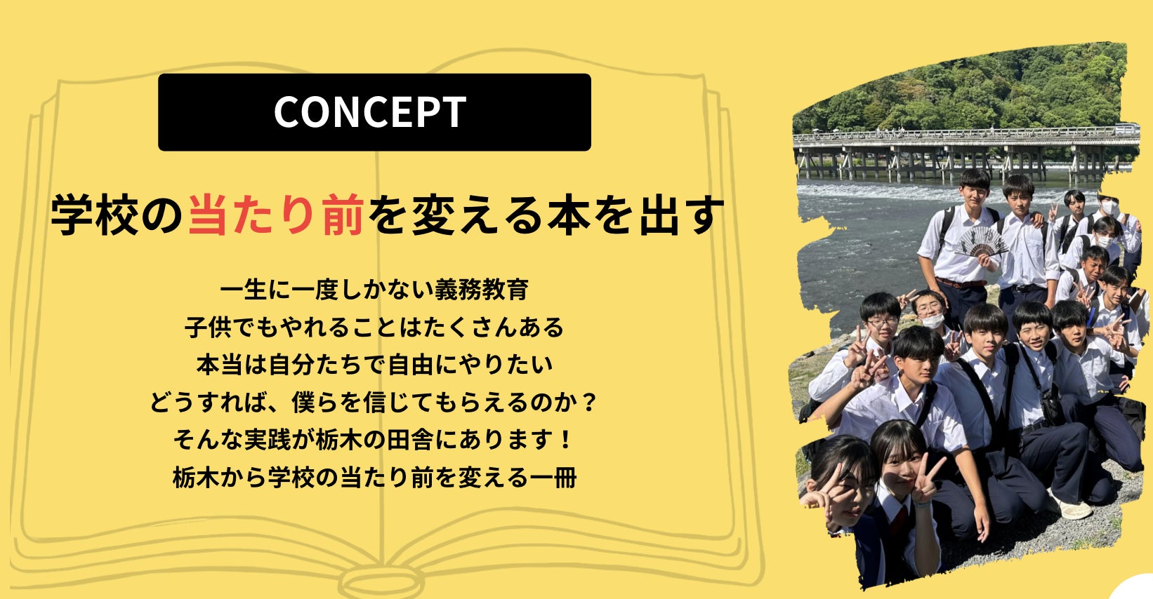 2025/12/15 20:10【活動報告#7】<ネクストゴール(第二目標)へ向けて>学年担当の酒井です。子供達の活動に興味を示していただき感謝いたします。第二目標へ向けてサイト側から承認を得られました。ここからは、50万円目指して進んでいきます。HPについても、生徒たちから今回は大人目線で作成して欲しいと依頼があり、酒井が担当しました。さて、そもそも学校とは何ですかね?今回は、生徒の活動よりも、大人の目線で活動報告ができればと思っています。「主体的性」という言葉が流行語のように飛び交っています。学校改革も同様です。でも、何をどうすれば良いのか?何が主体性なのか?基準はありません。そこで、学年で定めた方針が、「自己決定をさせ、責任を持たせる」ということ。授業も、生徒指導も、行事も、とりあえず対話しながら目的を共有して、お互いにどこまでやれるのかの役割を明確にして。そして責任の範囲を定めて。結果、子供が同僚になって。<情報は共有、とりあえず話してみる>今年の4月からの学年で一斉に行った取り組みの一部を紹介します。1、エンゲージメントカードで自己開示をして、学級づくり(酒井の選んだカード)テーマは、仕事で大切にしたいこと2、行事を全てプロジェクトチームにして動かす。(運動会、修学旅行、音楽祭)どのチームに所属するのかも自己決定。チームが中心となってクラス運営。運営の先にある目標は、学級目標の価値観のどれかを手にいれること。3、廊下を公園化廊下にベンチと机を置いてみました。廊下は走らない、床に座らない。廊下でガヤガヤしない。では、子供はどこで友人と交流するのか?「立ってると邪魔になるんです〜」と生徒に言われたから、「じゃあ、座れればいいんじゃん?」となり、公園化を実行。設置してから、先生たちも座って生徒と話してます。学習している生徒もいます。授業時間には遅れていません。もちろん、イタズラする生徒もいません。<目指す先の生徒像とは>生徒は大人と経験値以外何も変わらない。なら、やらせてみよう!同僚として見よう!権利がとか堅苦しい話ではなくて、裁量の範囲内で一緒に考えるて決める。だから全員が納得できる60点を目指して行動と責任が生まれる。これが主体性だと考えています。何でも自由に主体性はありません。行事だけでなく、授業も休み時間も含めて生徒たちは頑張ってます。この本が世の中に出た先に、子供の権利が変わるかもしれません。学校の存在価値が変わるかもしれません。彼らは、そこを目指しています。引き続き、周りにいる多くの大人にこのプロジェクトの宣伝をお願いします。もちろん、学校に直接見学に来てくれても構いません。生徒たちのリアルを見てください。 もっと見る