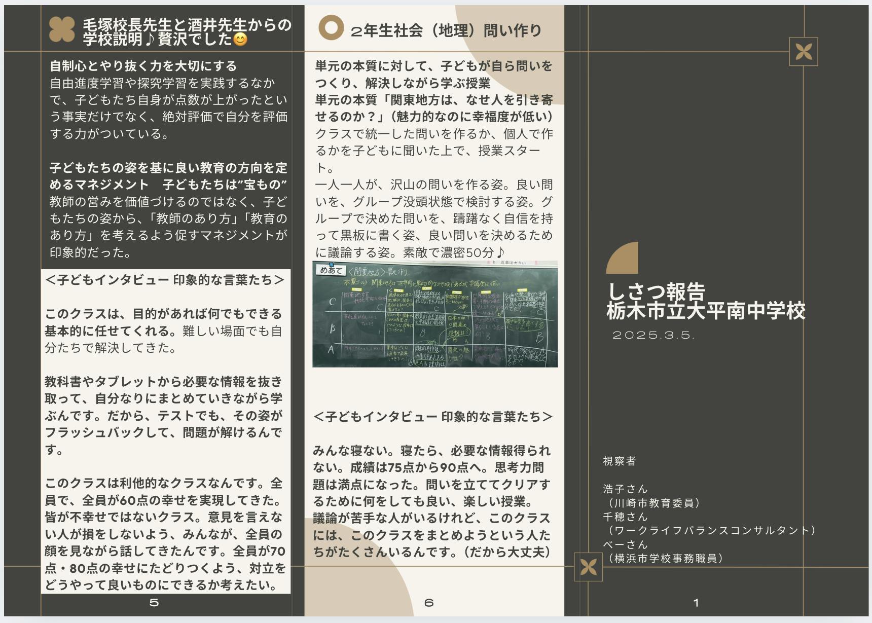 栃木市吹上小・栃木市栃木南中・川崎市教育委員・東日本国際大学附属昌平中・大平南中学校評議委員