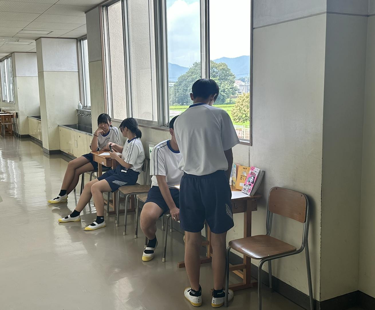 廊下にベンチと机を置いてみました。廊下は走らない、床に座らない。廊下でガヤガヤしない。では、子供はどこで友人と交流するのか?「立ってると邪魔になるんです〜」と生徒に言われたから、「じゃあ、座れればいいんじゃん?」となり、公園化を実行。設置してから、先生たちも座って生徒と話してます。学習している生徒もいます。授業時間には遅れていません。もちろん、イタズラする生徒もいません。