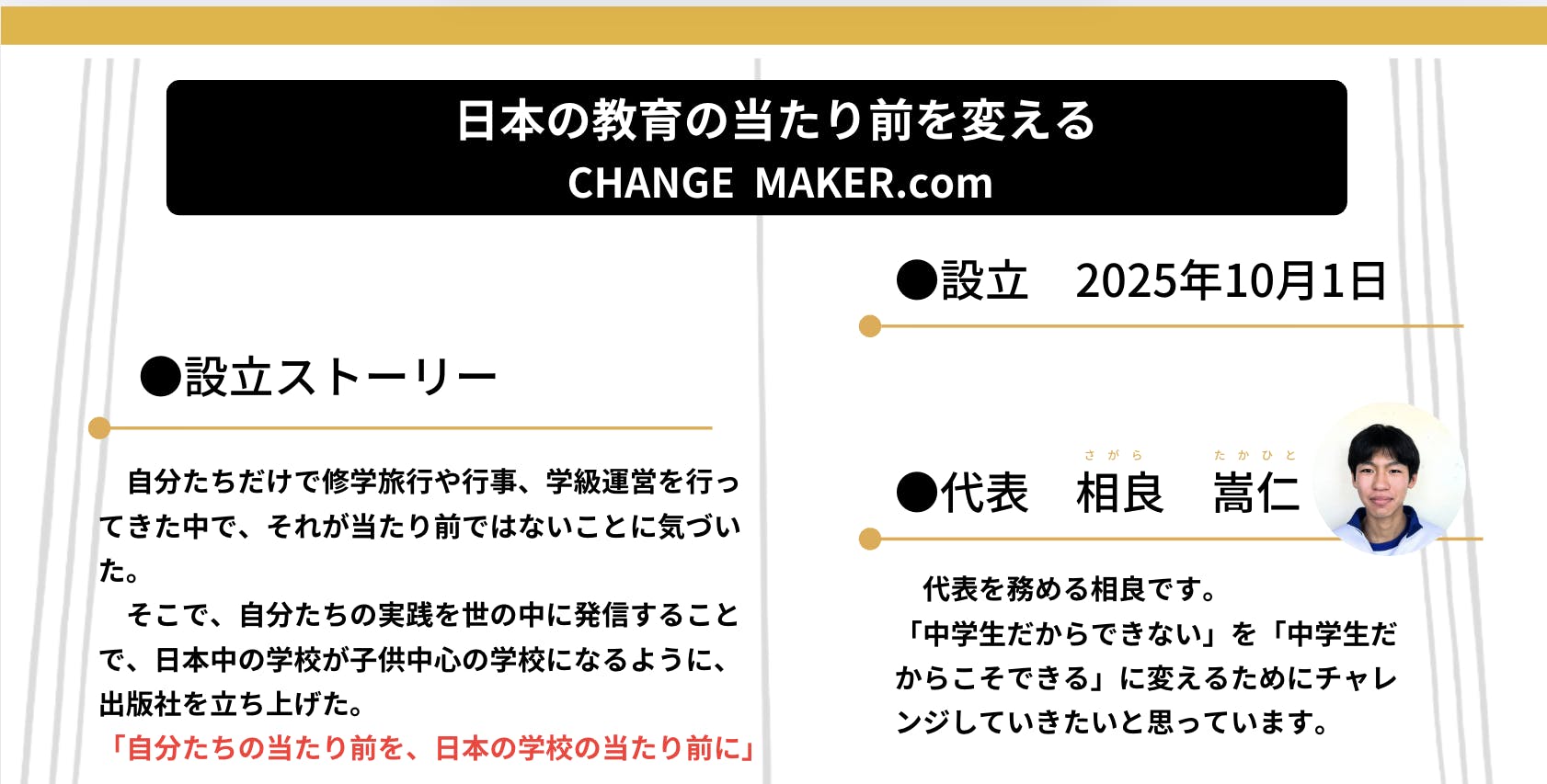 生徒が立ち上げた CHANGE MAKER.COMの企業資料より