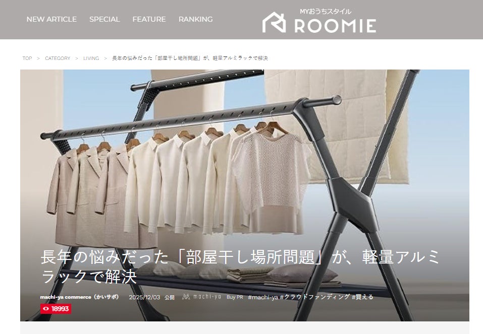皆さまお世話になっております。DZTでございます。このたび、12月3日付でROOMIEにて 「長年の悩みだった「部屋干し場所問題」が、軽量アルミラックで解決」を ご紹介いただきました。商品にご関心をお持ちの方は、ぜひ下記リンクより記事をご覧ください。 https://www.roomie.jp/2025/12/1657441/また、プロジェクトページも引き続き公開中ですので、あわせてご覧いただければ幸いです。 https://camp-fire.jp/projects/899121/viewさらに、お得なクーポンを配布中!クーポン詳細⇒割引率:10%OFF/本プロジェクト限定▶ クーポン取得はこちらhttps://camp-fire.jp/projects/899121/view?ctoken=PxLR8RKepbneCMFGこの機会に、SNSでシェアいただいたり、ご家族やご友人にもお勧めいただけますと大変励みになります。 今後ともご支援のほど、何卒よろしくお願い申し上げます。 DZT
