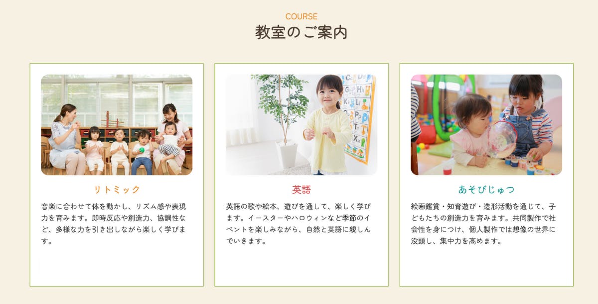 事業内容:幼児教室、リトミック、あそびじゅつ、英語
