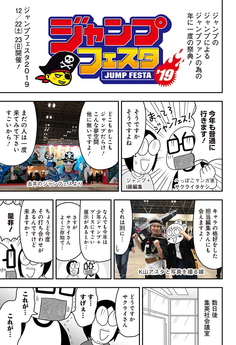 そして、本日「少年ジャンプ+」にてサクライタケシ先生による『すすめ!ジャンプへっぽこ探検隊!」の最新話としてルポ漫画「ババアを拝みにジャンフェスに行こう!」が公開されました!