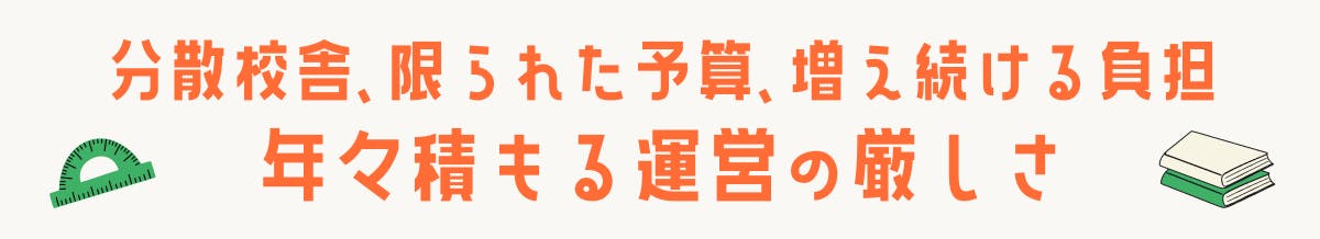 授業料は「必要な子どもが通えること」を最優先に考え、できるだけリーズナブルな価格に設定してきました。また、新型コロナの際などには、一時的な授業料減免措置なども講じました。その選択は間違いではなかったと信じていますが、一方で学校の収益構造は常に綱渡りの状態となり、校舎の修繕や設備投資に回せる余裕はほとんど残されていませんでした。