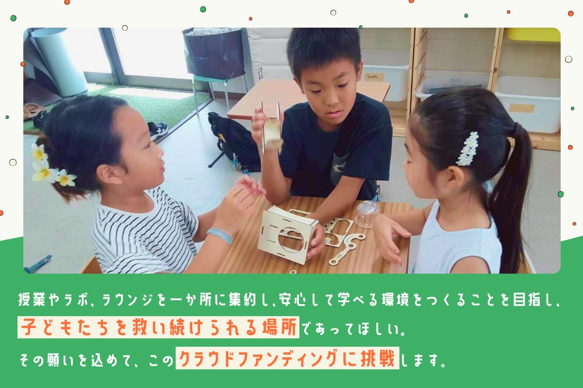 そんな環境から、多様な子どもたちの学び × 居場所 × 安全”を守るため、新拠点への引越費を募るクラウドファンディングを立ち上げました。