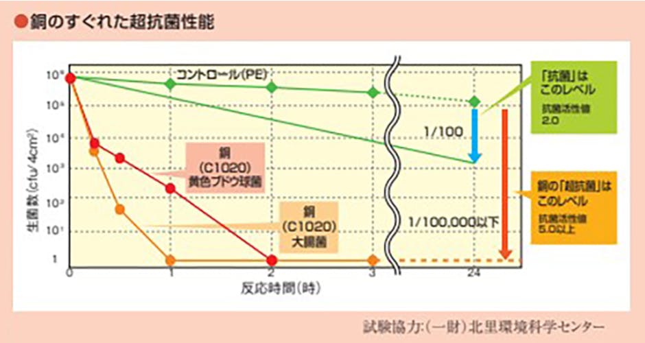 引用:一般社団法人日本銅センター/銅の超抗菌性能