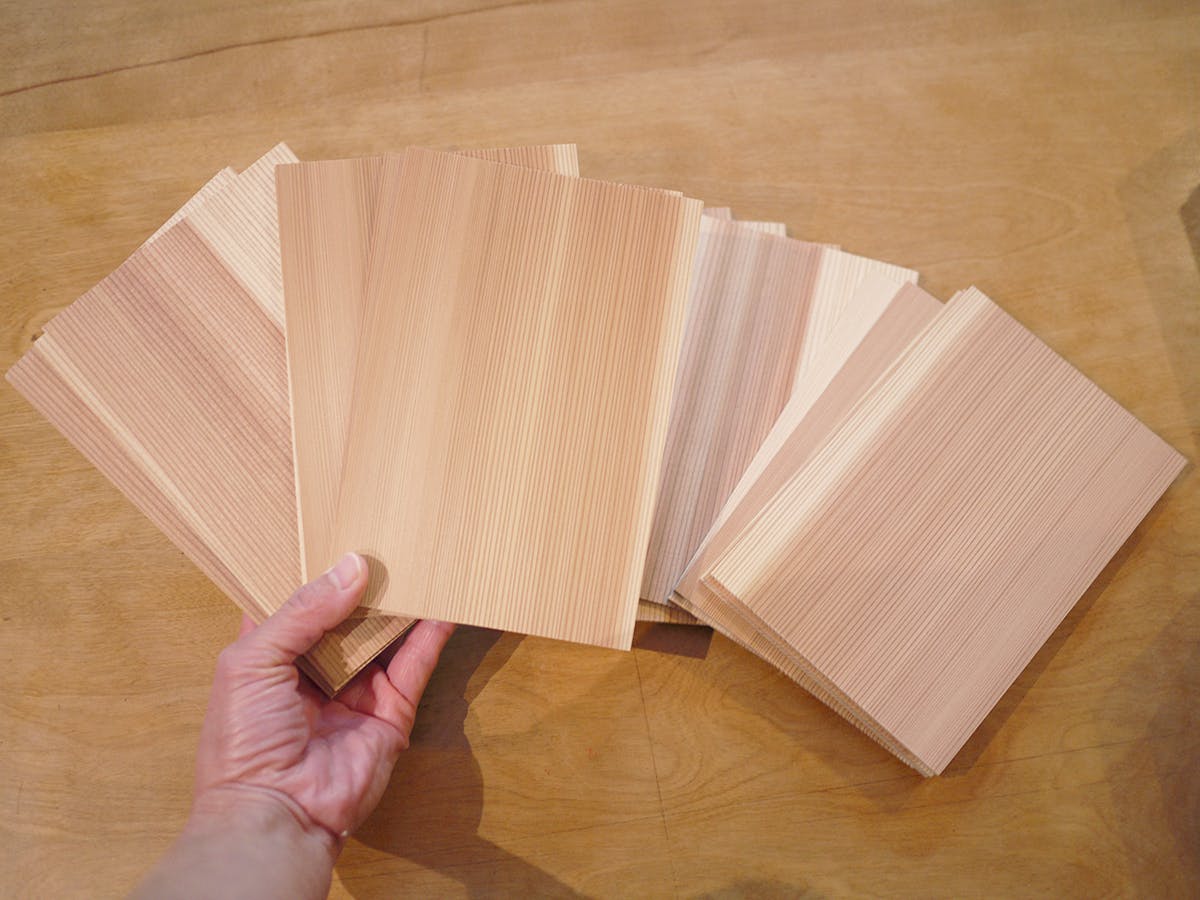一枚ずつ、手間はかかるけど、木へ愛情を込めて1冊ずつ作っています。