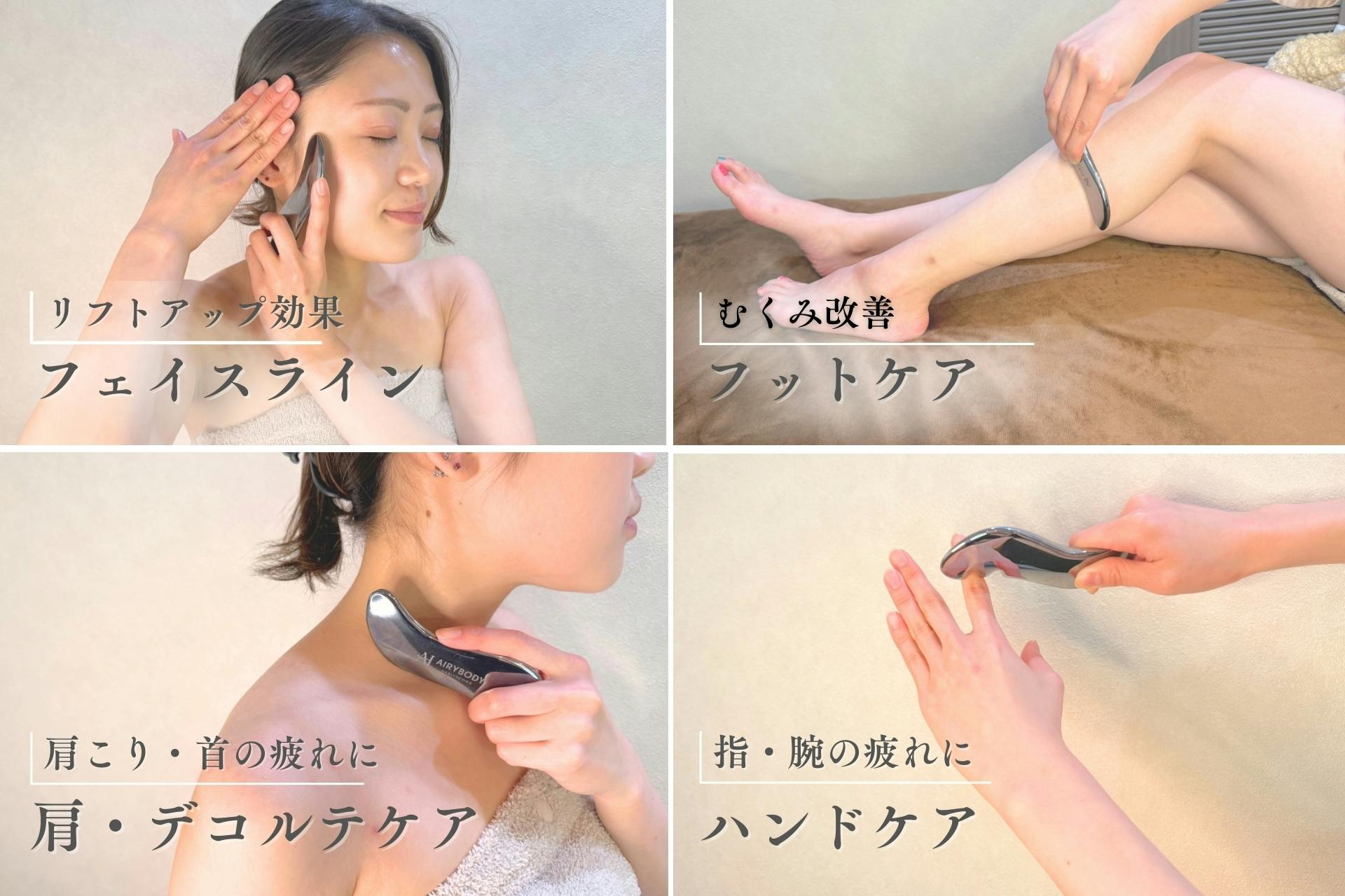 プレートでマッサージすることでむくみ解消、小顔、リフトアップ、肩こり緩和、代謝アップなどの美容や健康効果が期待できます。