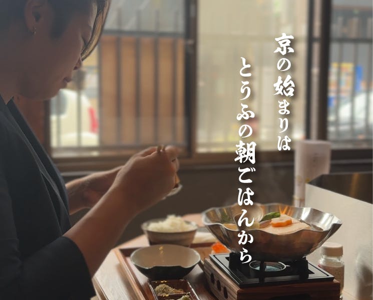 1日のはじまりを、もっと京都らしく。「京の始まりは、とうふの朝ごはんから。」という言葉には、そんな想いが込められています。
