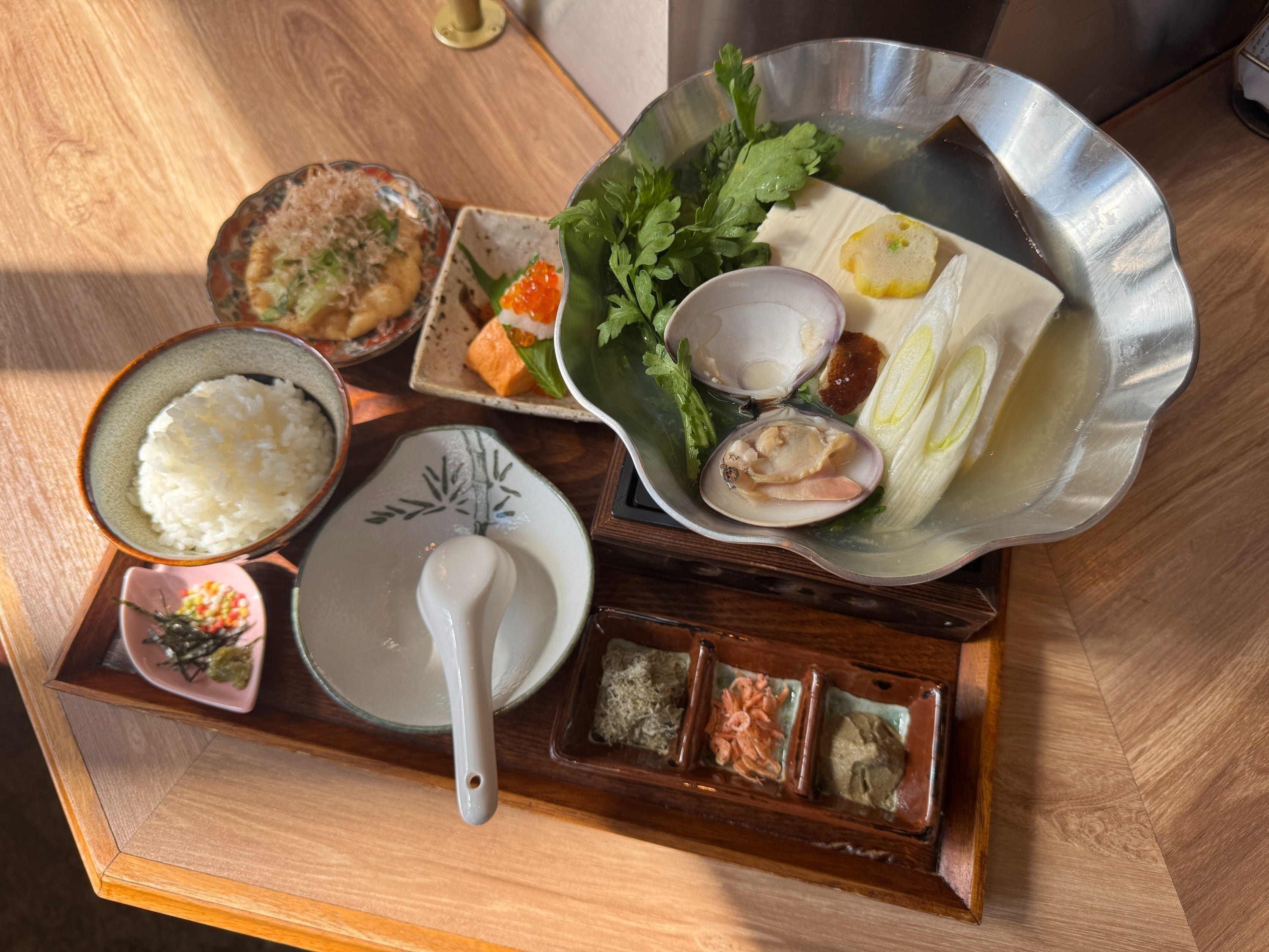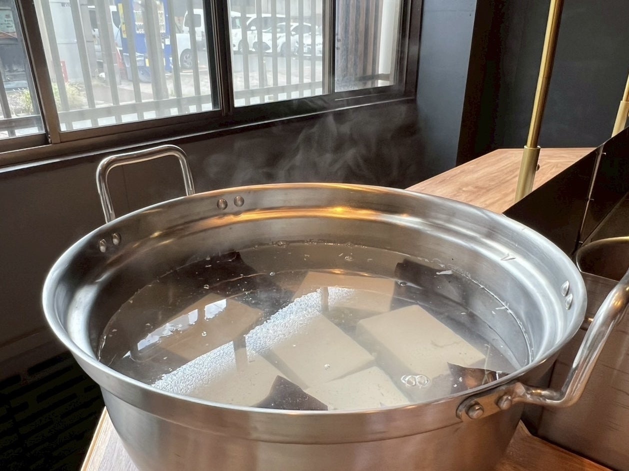 そうして生まれたのが、「ネオ湯どうふ」。あさりと昆布のダブルスープで仕立てた、香り豊かな湯どうふです。素材はそのままに、味のバランスと出汁の透明感で現代の感性に寄り添いました。