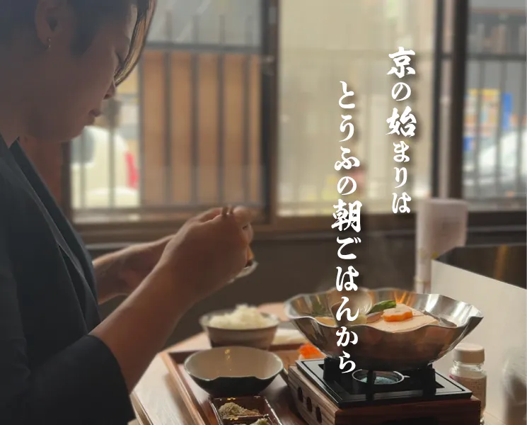 1日のはじまりを、もっと京都らしく。「京の始まりは、とうふの朝ごはんから。」という言葉には、そんな想いが込められています。