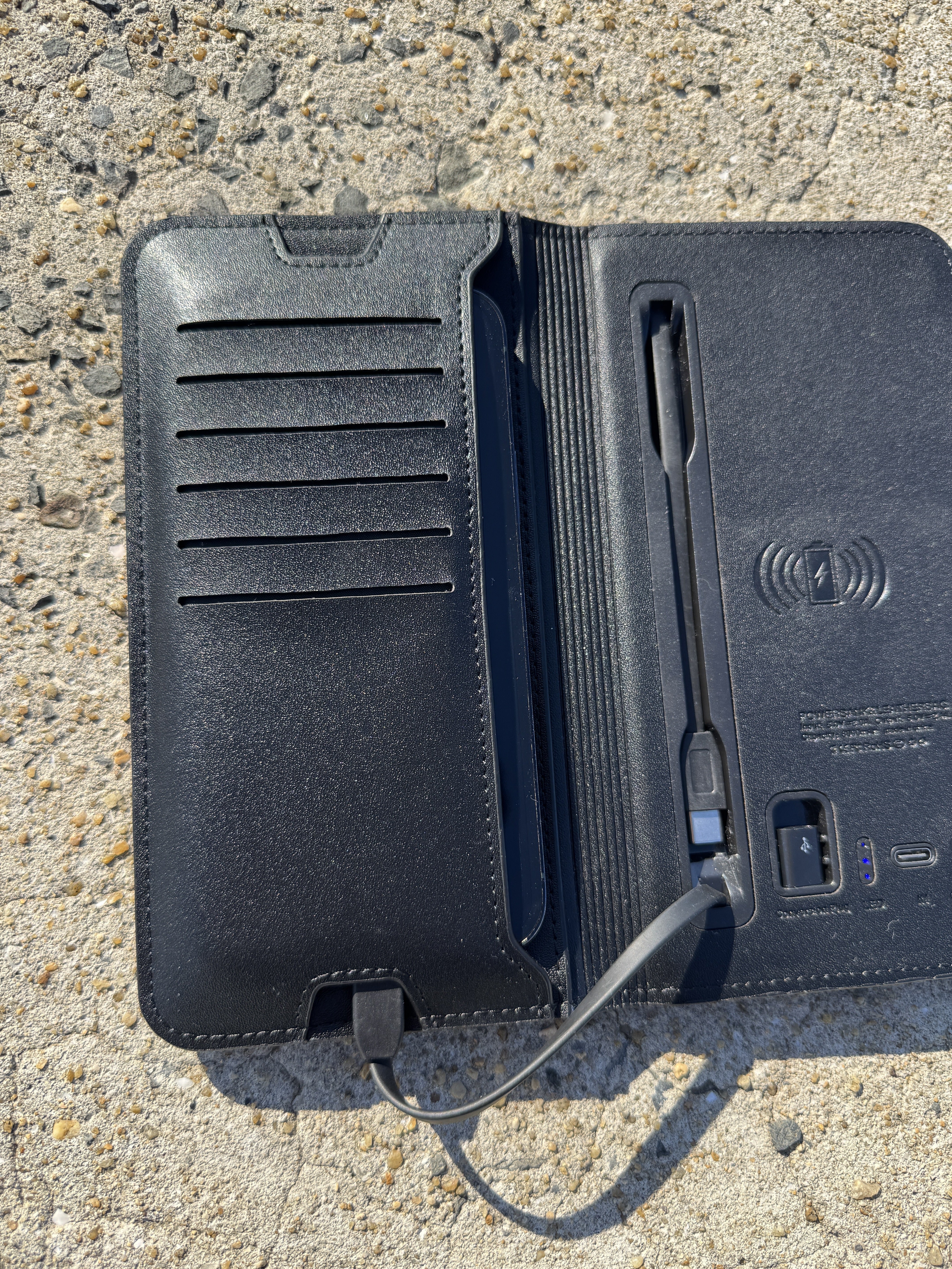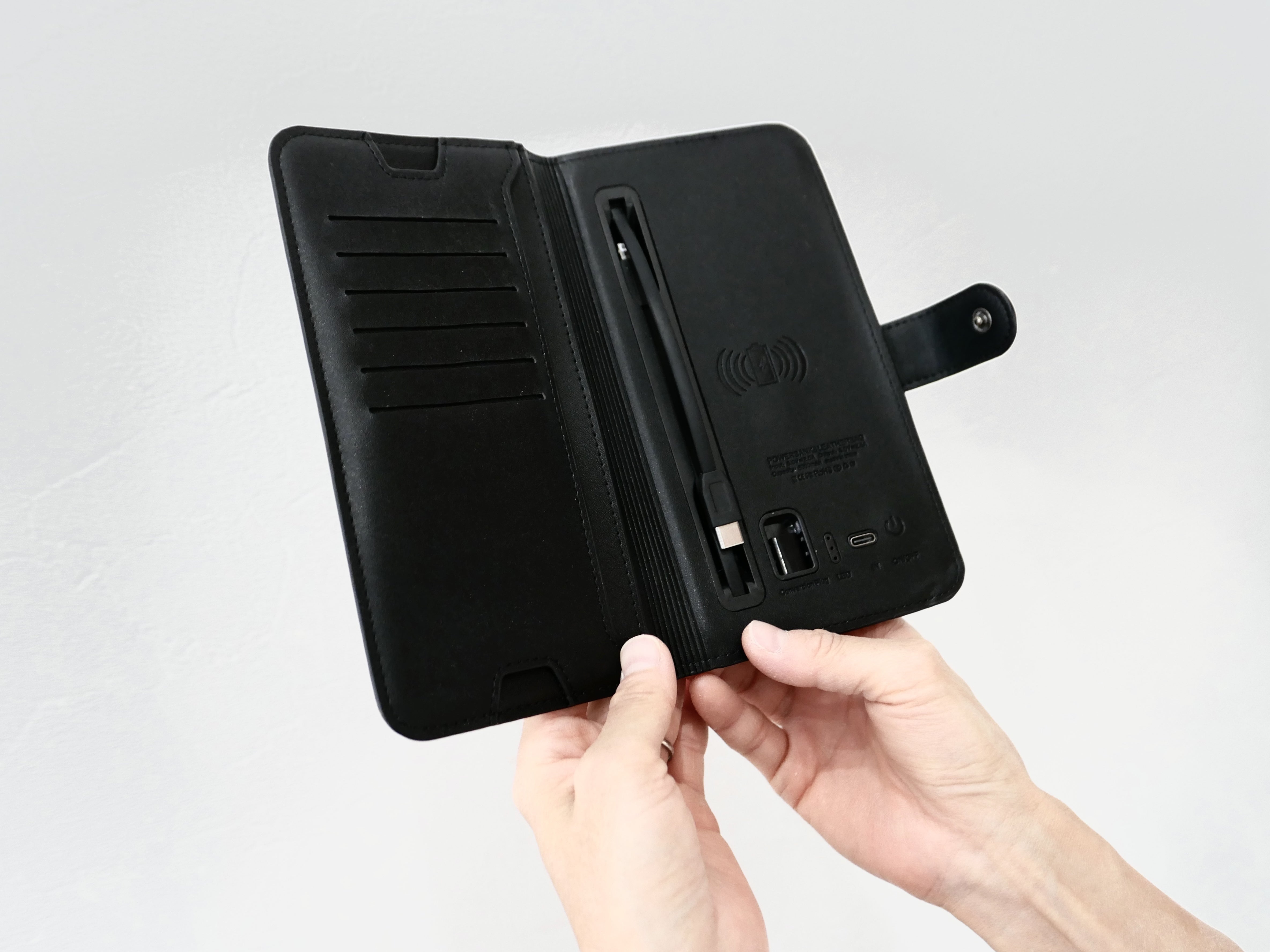 このウォレットには、8000mAhのバッテリーが内蔵されています。