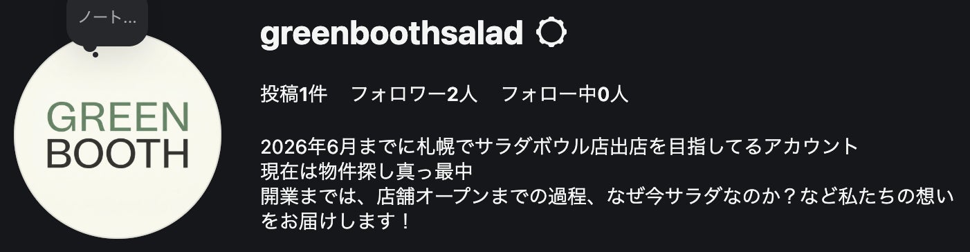 2026/03/26 18:25こんにちは!Green Boothの河野です。はい、店名決まりました。今度は商標も調べた上でなので大丈夫です!Greenは野菜や健康を連想させるワードなのでどうしても残したかったんです。Boothは都会的でありながら、落ち着けて疲れた心身をリセットしてくれるような特別な場所をイメージできる名前になったかと思います。インスタグラムも早速開設しました。オープンまでの期間は、オープンに向けての進捗情報、仕入れ先の農家さんや私たちの思い、健康のための有益な情報をお届けしていく予定です。オープン後はリールなども使い、マッチョに突撃!街角健康クイズ!企画なども行いたいと考えてます。もしよろしければフォローしていただけると励みになります!今後ともよろしくお願いいたします。 もっと見る近況報告