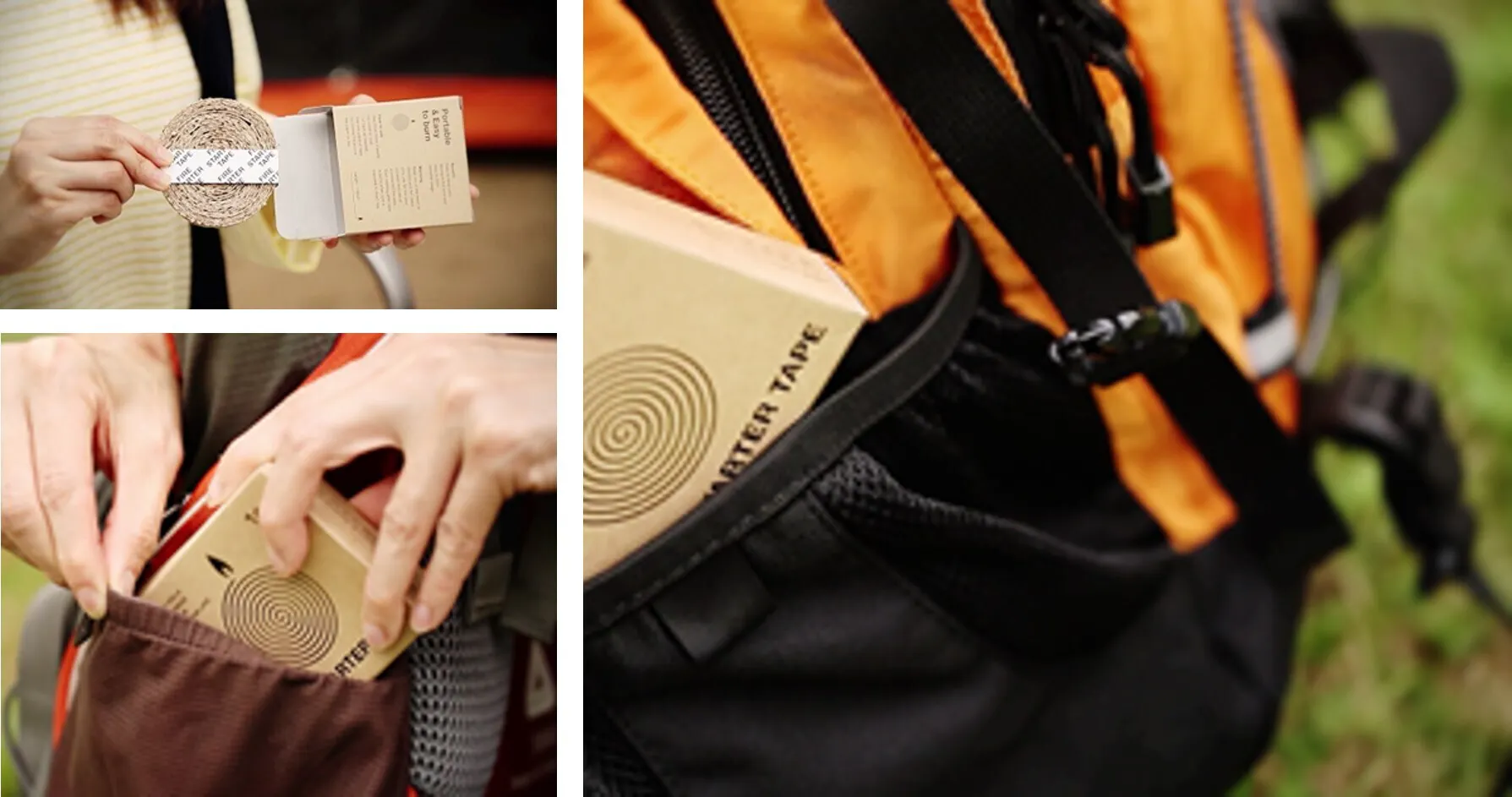 いつでもどこでも「Fire Starter Tape」 があれば簡単に火起こしができます。