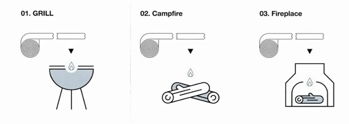 今までの着火剤になかった新しいテープ型の「Fire Starter Tape」を上手に使ってスピーディーな火起こしができるようになれば、あなたもキャンプ場のヒーローです!