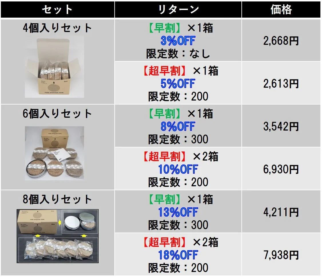 ぜひ「Fire Starter Tape」を使って、スムーズな火起こしを体験してみてください。
