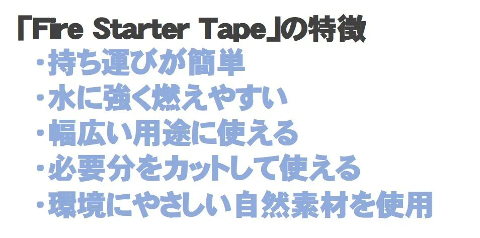 そこで、今までなかった新しいスタイルのテープ型着火剤「Fire Starter Tape」をおすすめします。