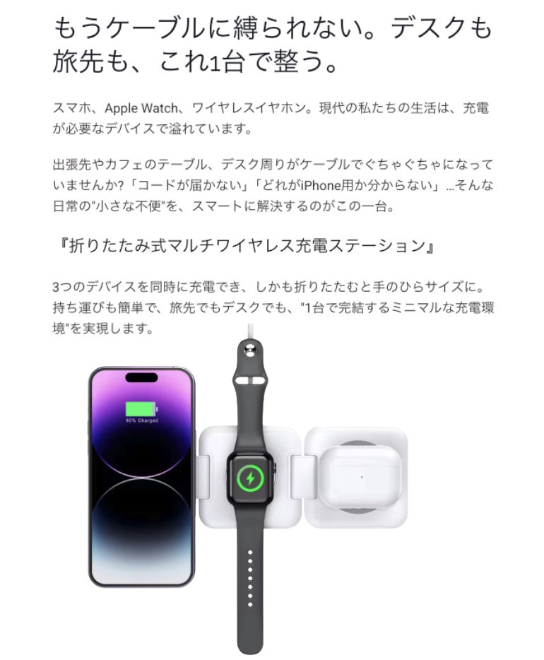 超早割 25%OFF 100名限定 定価3,100円 →2,325円(税・送料込) 【内容】 ワイヤレスチャージャー×1 (配送時期) 商品到着は2026年1月を想定しております。 ※製造状況により出荷時期が遅れる場合がございます。 ※商品代を安くする為に工数削減をしており出荷連絡は致しません。活動報告をご覧ください本 商品のメーカー情報 製造国 -中国 Shenzhen Paisituo Technology Co., Ltd. ※この商品はOEMです。 商品概要について 商品サイズ 11.8X8.5 cm 素材 ABS + PC