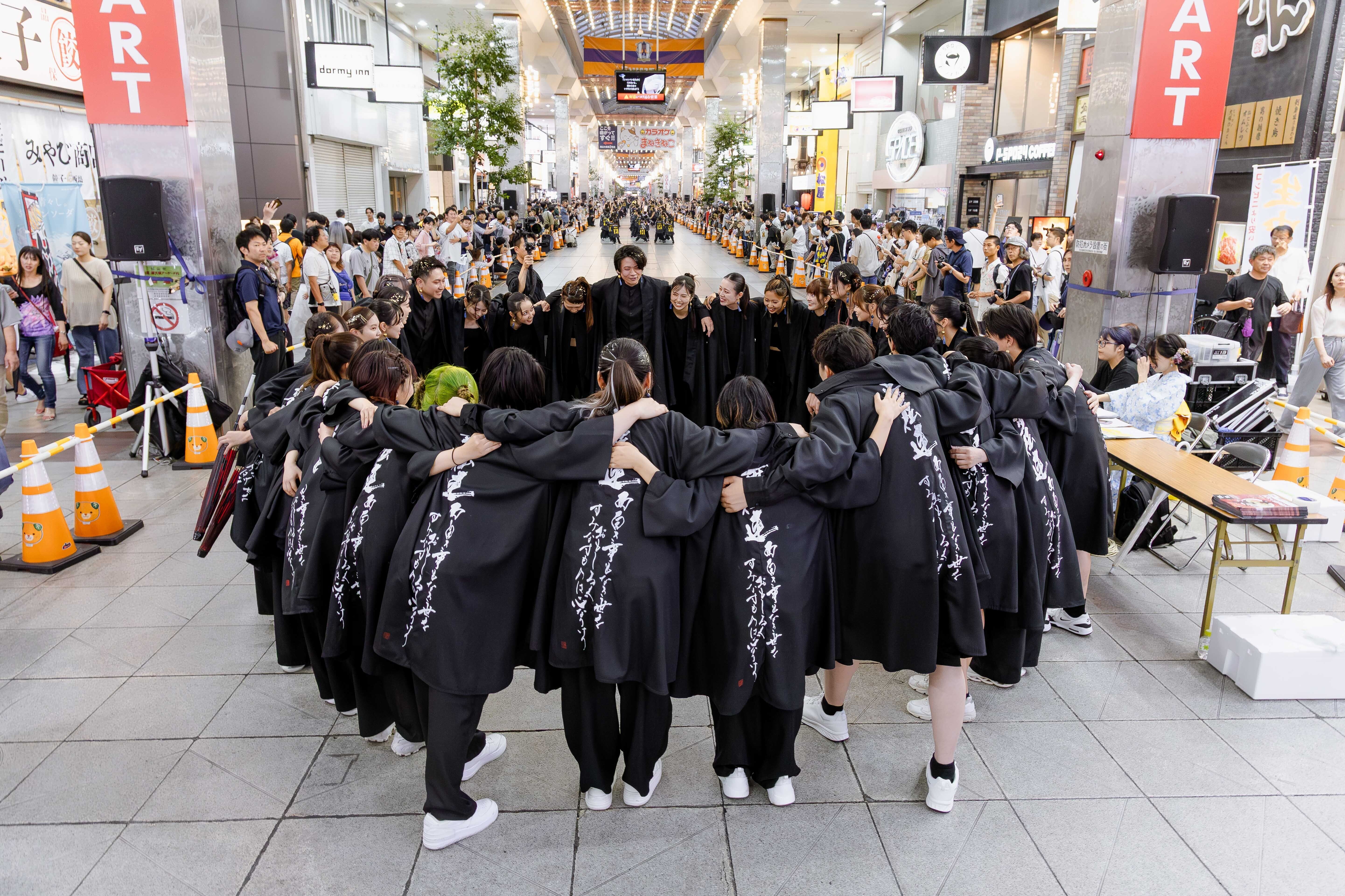 熱意あふれる20代のメンバーが集まり、共に汗を流し、そろいの羽織を身にまとって舞い踊る。