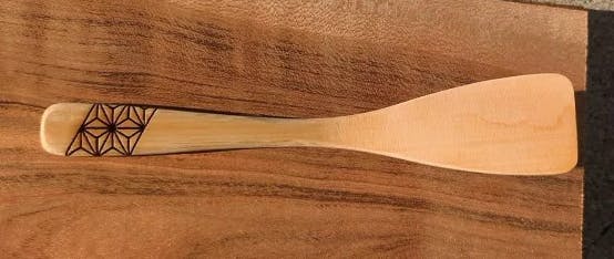 職人さんが1つ1つ手作りの竹スプーン「オリジナル竹スプーン」には丹波山はにーのラベルデザインにも使用している「麻の葉模様」を施してもらいました!