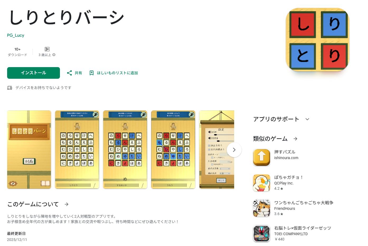 ・しりとりバーシインストールリンク