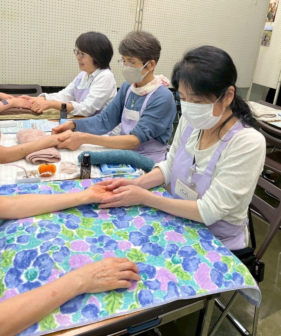 福島の仮設住宅にてアロマハンドトリートメントをしました。