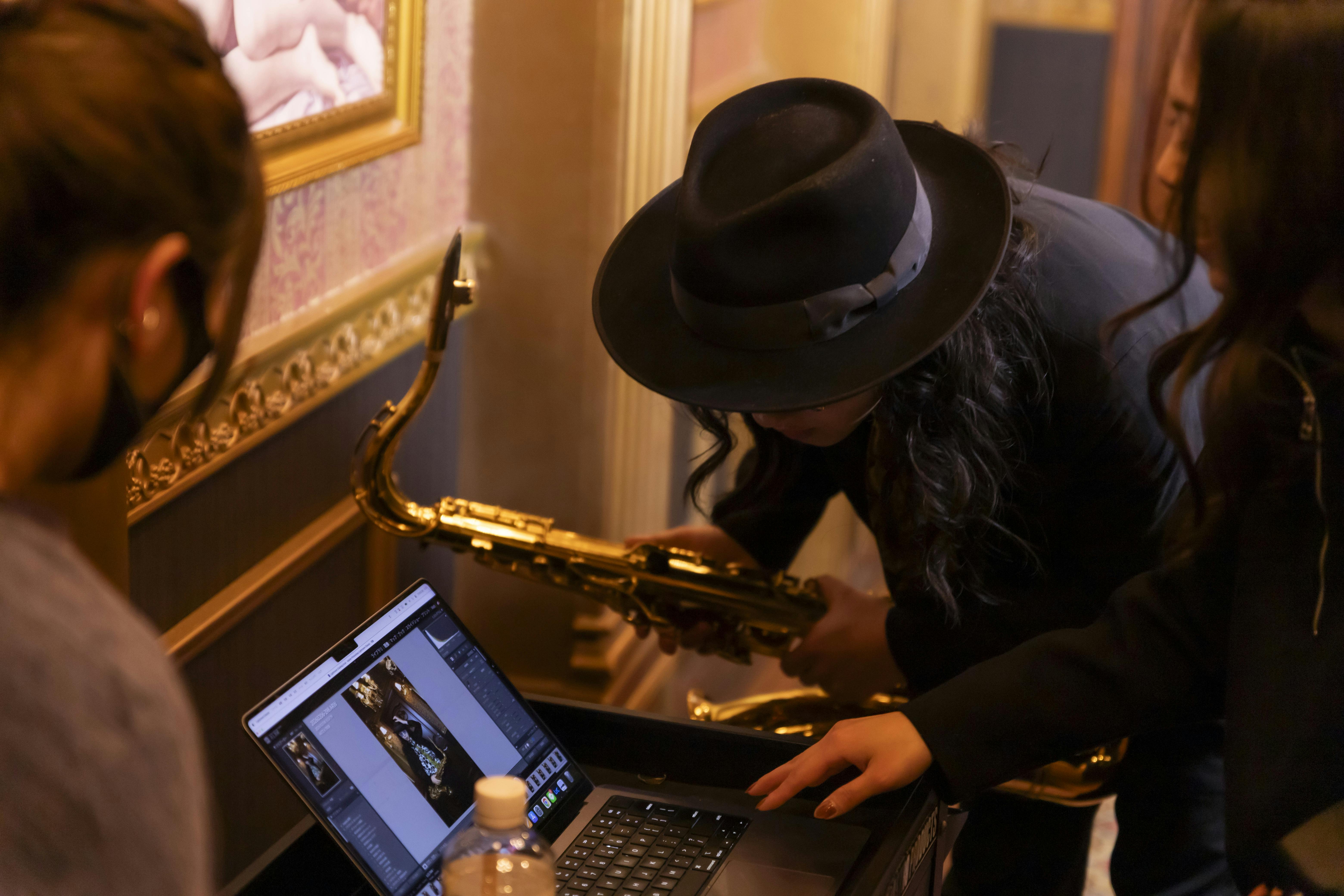 撮影アシスタントとしてトロンボーン奏者・モデルの寺谷光さんが駆けつけてくれました!