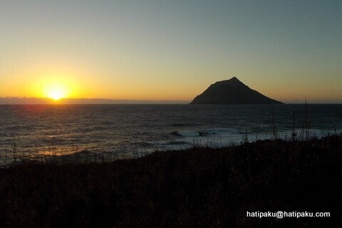 夕陽と八丈小島