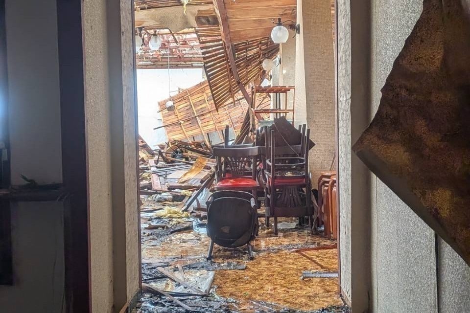 外壁が崩れ落ちそうな食堂
