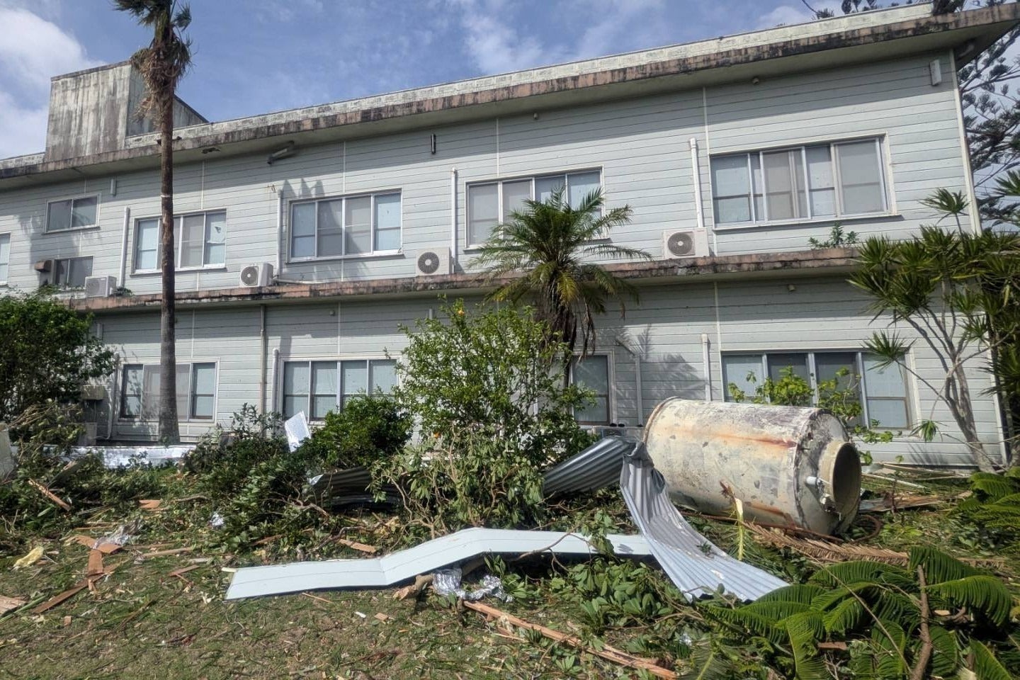 創業以来55年間、色々なことはりましたが、何とか切り抜けてきました。しかし、今回の台風被害は最たるもので、経験したことがなかったです。食堂、浴室、宴会場等ホテルの機能は破壊されました。トイレへの給水もまだ復旧せず。島の方々も被害を受けているにもかかわらず、水を運んで下さったり、倒れたブロック塀の処理、倒木の処理、また軽トラックを貸してくださった方、「何か手伝えることは?」と声をかけてくださいます。この助けがどれほど力と励みになるか知れません。ホテルの再開を待って下さる方、宴会場で再び太鼓を叩く日を待つ方々のために、再び立ち上がる力をお貸しください。