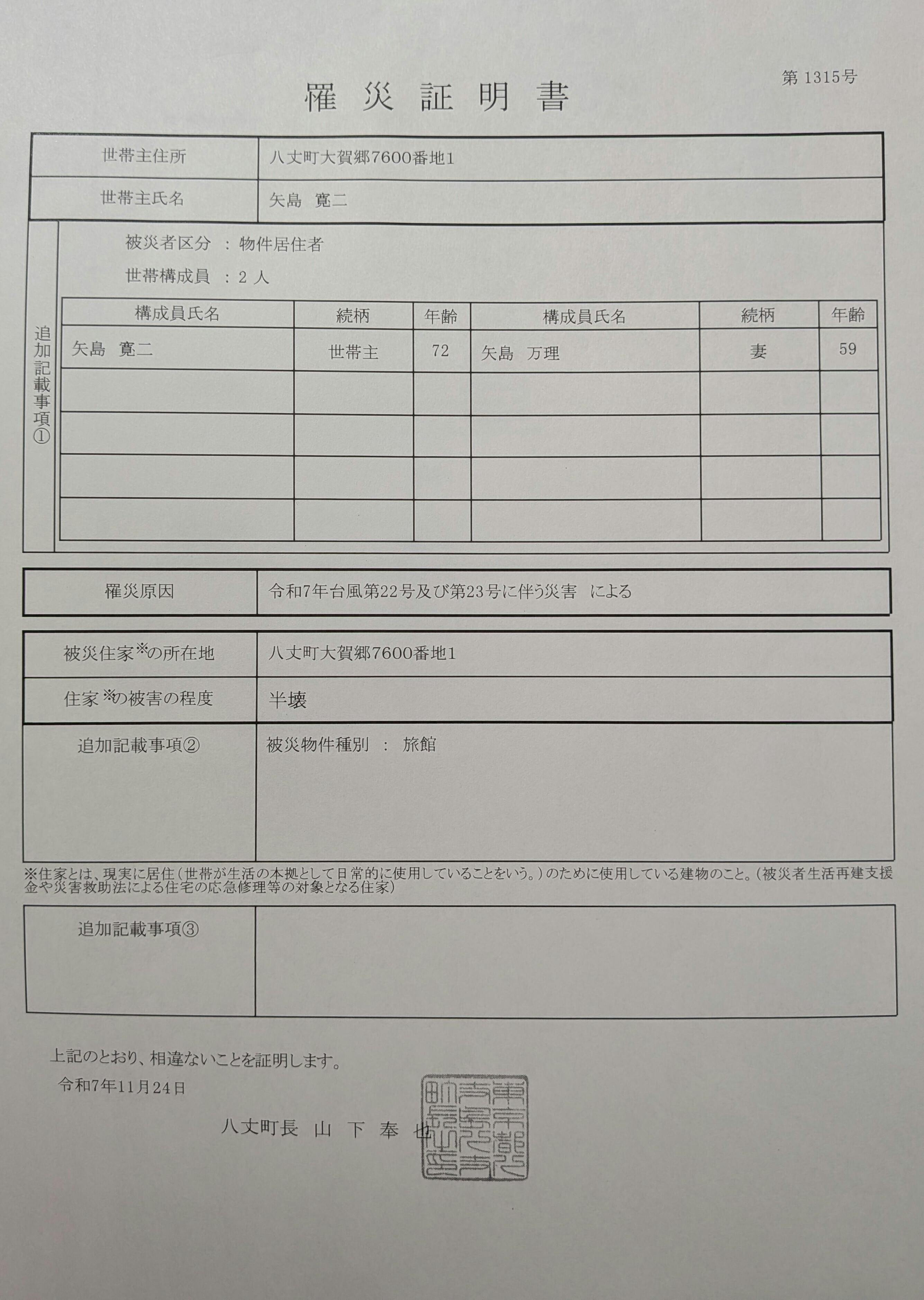 被災から早、1か月半が過ぎました。本日、町役場で手続きを済ませてきました。これでまた一歩、先に進むことができます。工事の見積もり、公的支援や融資の申請等、やることがありますが、ひとつずつ片付けていくしかありません。引き続きよろしくお願いいたします。