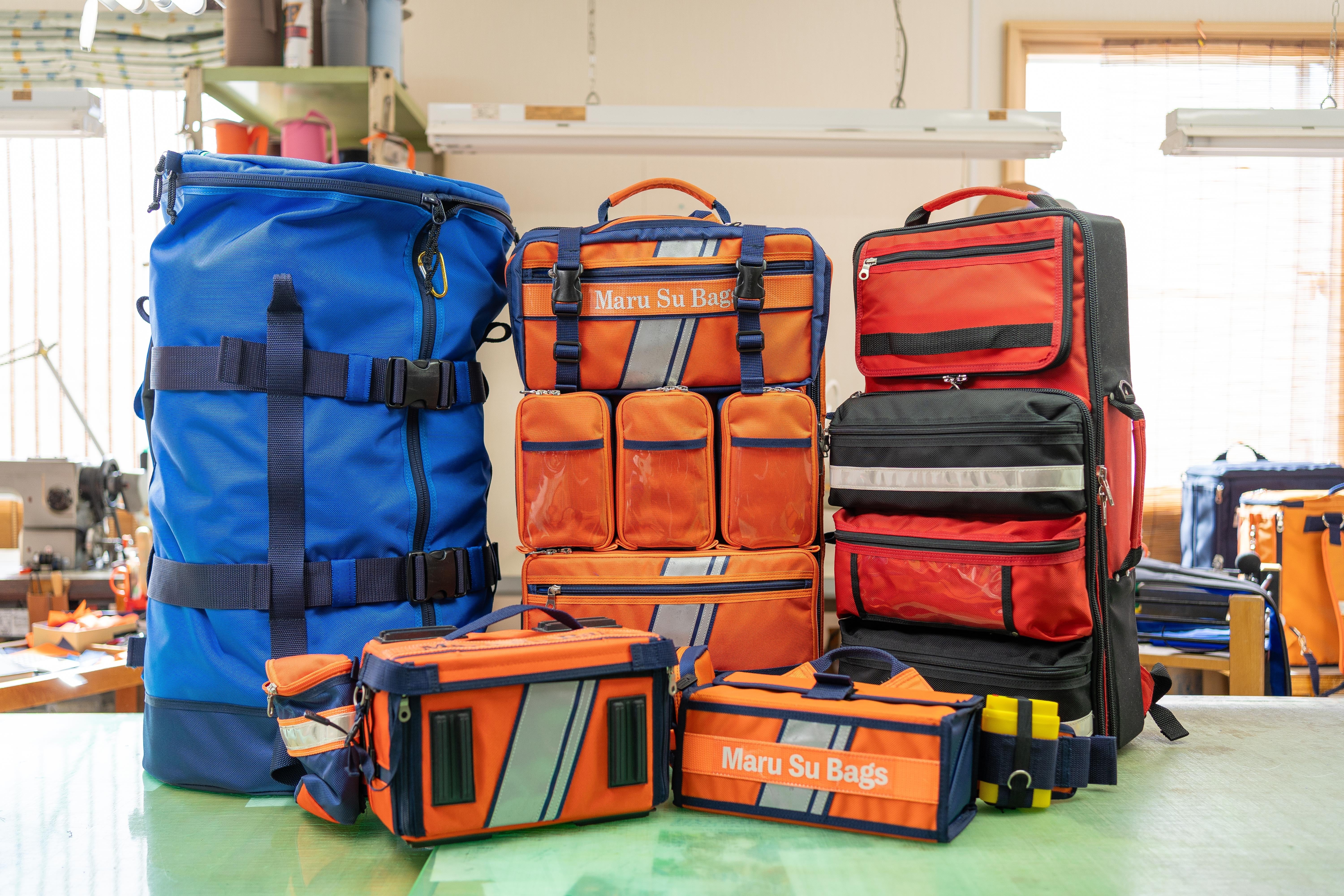 LIFE BOXを開発したマルスバッグは、兵庫県丹波市に拠点を置くバッグメーカーです。これまで、救急医療現場で使用される酸素ボンベバッグや資機材器材バッグ、防災・救助活動用の専用バッグなど、命を守る現場で使われるバッグを数多く手がけてきました。「現場で人の命を支える道具」「個々で異なる現場の要望に全てお応えしたい」をモットーに、現場が求める真に使いやすいバッグを製作するつくることを生業としてきた会社です。