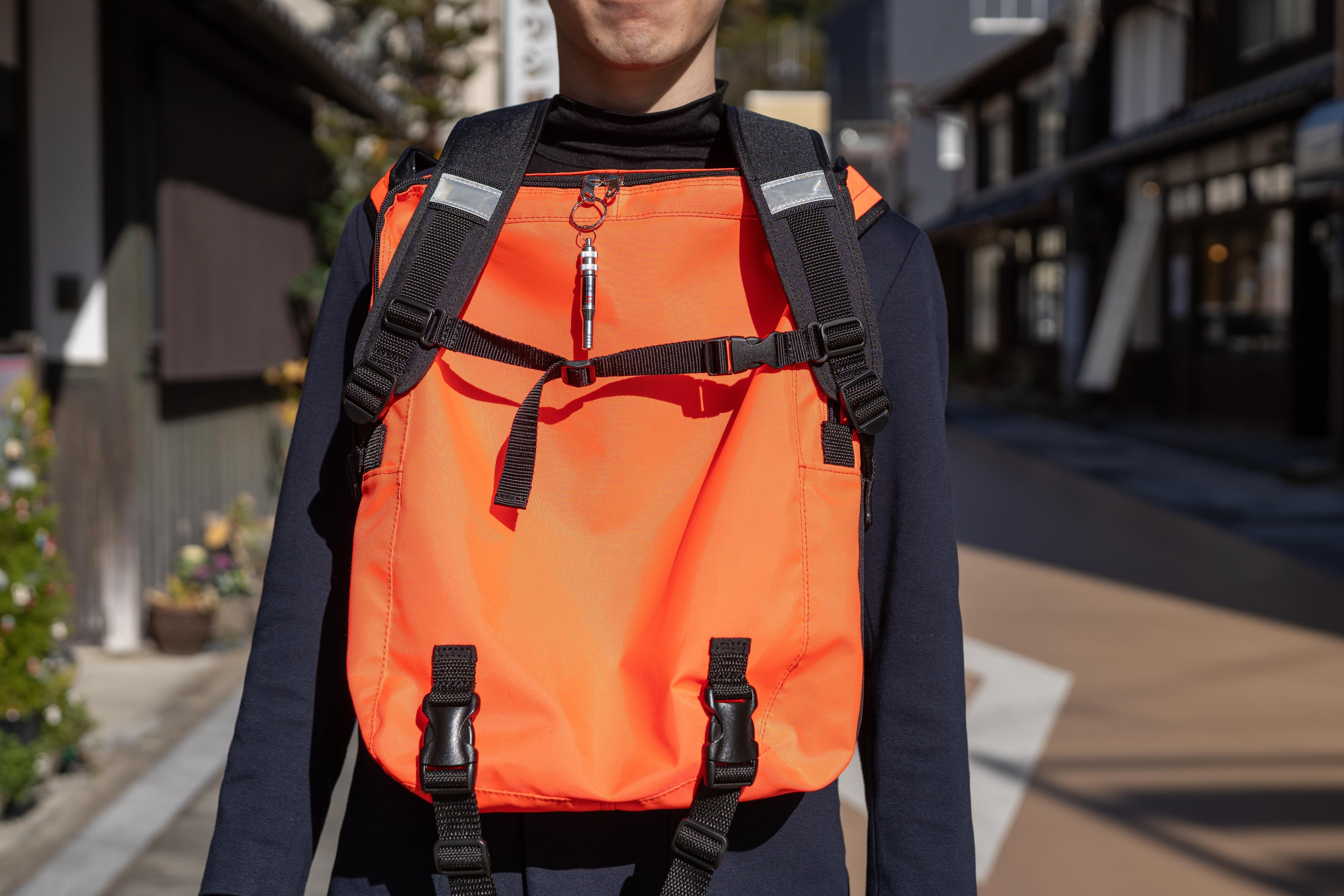 そのような私たちが次に取り組むべきは、「災害が起こる前」から命を守るバッグだと考えました。近年頻発する線状降水帯によるゲリラ豪雨、それに伴い全国各地で発生する河川氾濫による被害、さらにはその発災が懸念される南海トラフ地震を踏まえ、被災地の方々や自治体の職員、防災に関心のある先生方と話す中で、通学路や通勤路で突然水が押し寄せたとき、手ぶらで逃げるしかない現状に強い危機感を覚えました。