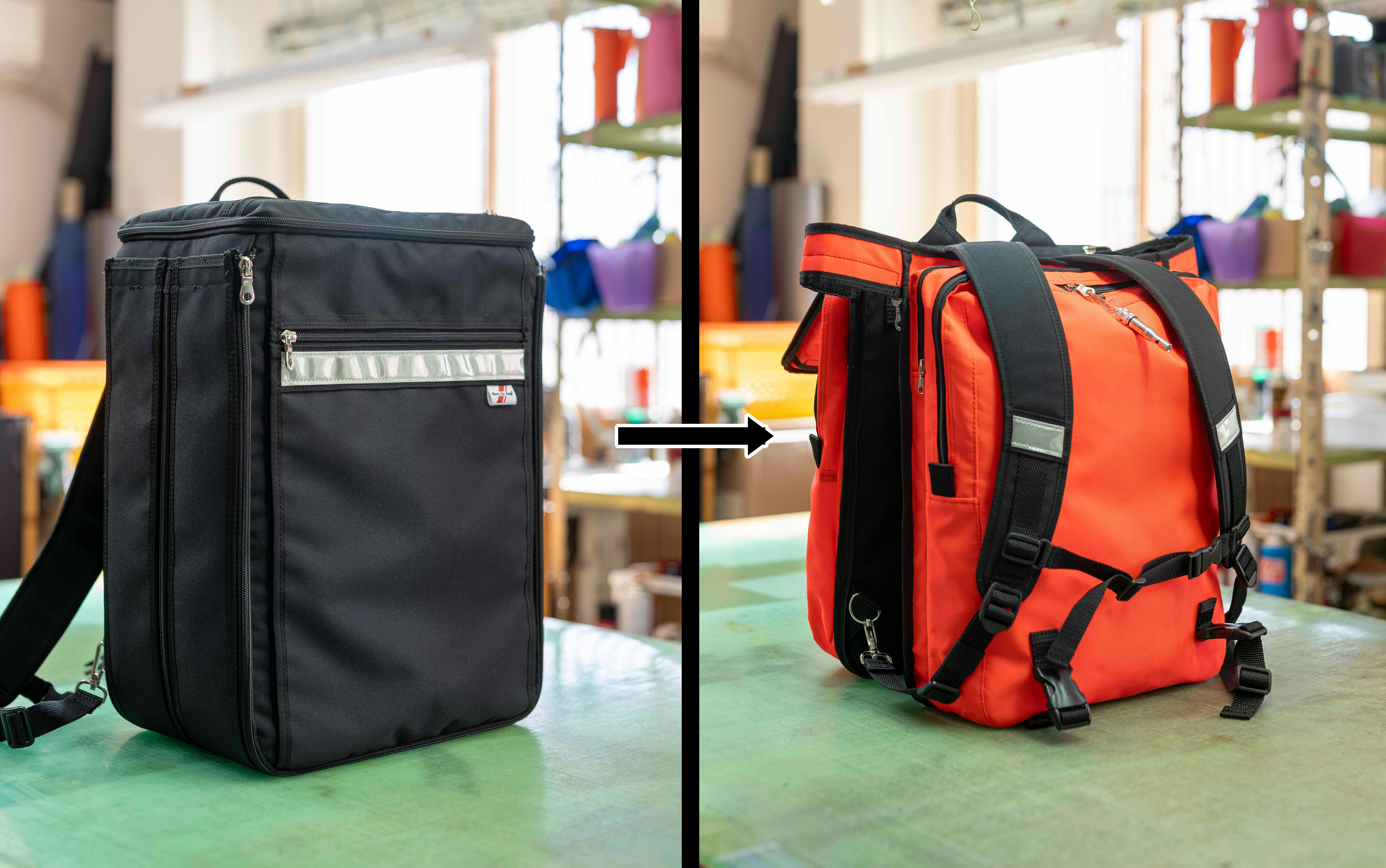 LIFE BOXを開発したマルスバッグは、兵庫県丹波市に拠点を置くバッグメーカーです。これまで、救急医療現場で使用される酸素ボンベバッグや資機材器材バッグ、防災・救助活動用の専用バッグなど、命を守る現場で使われるバッグを数多く手がけてきました。「現場で人の命を支える道具」「個々で異なる現場の要望に全てお応えしたい」をモットーに、現場が求める真に使いやすいバッグを製作するつくることを生業としてきた会社です。