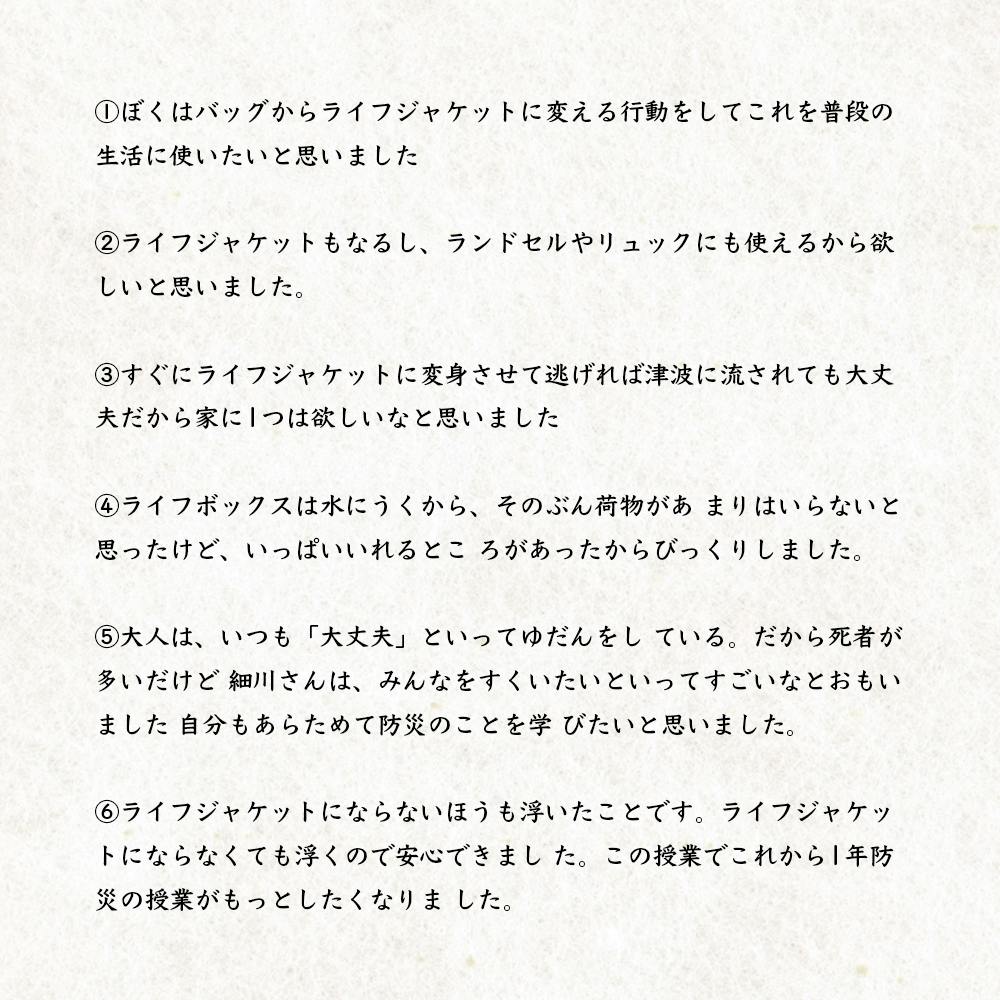 また、防災授業の終了後には、子どもたちが授業を通して感じたことを文章にして送ってくれました。
