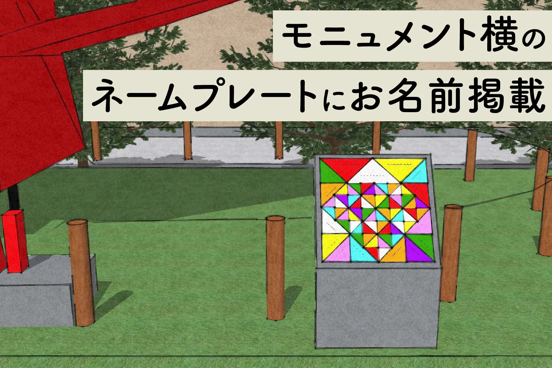モニュメント横にネームプレートを設置し、支援者様のお名前(ニックネーム)を半永久的に掲載します。