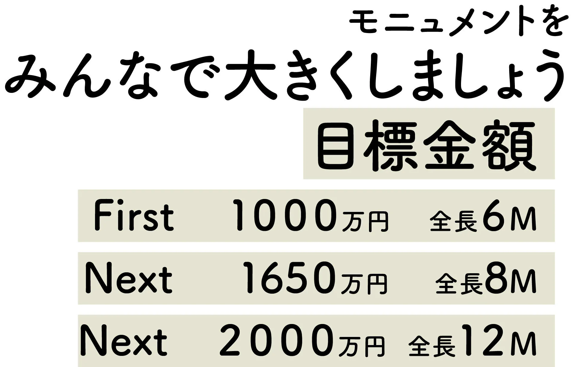 目標を超えるご支援をいただいた場合、モニュメントの大きさがランクアップします!