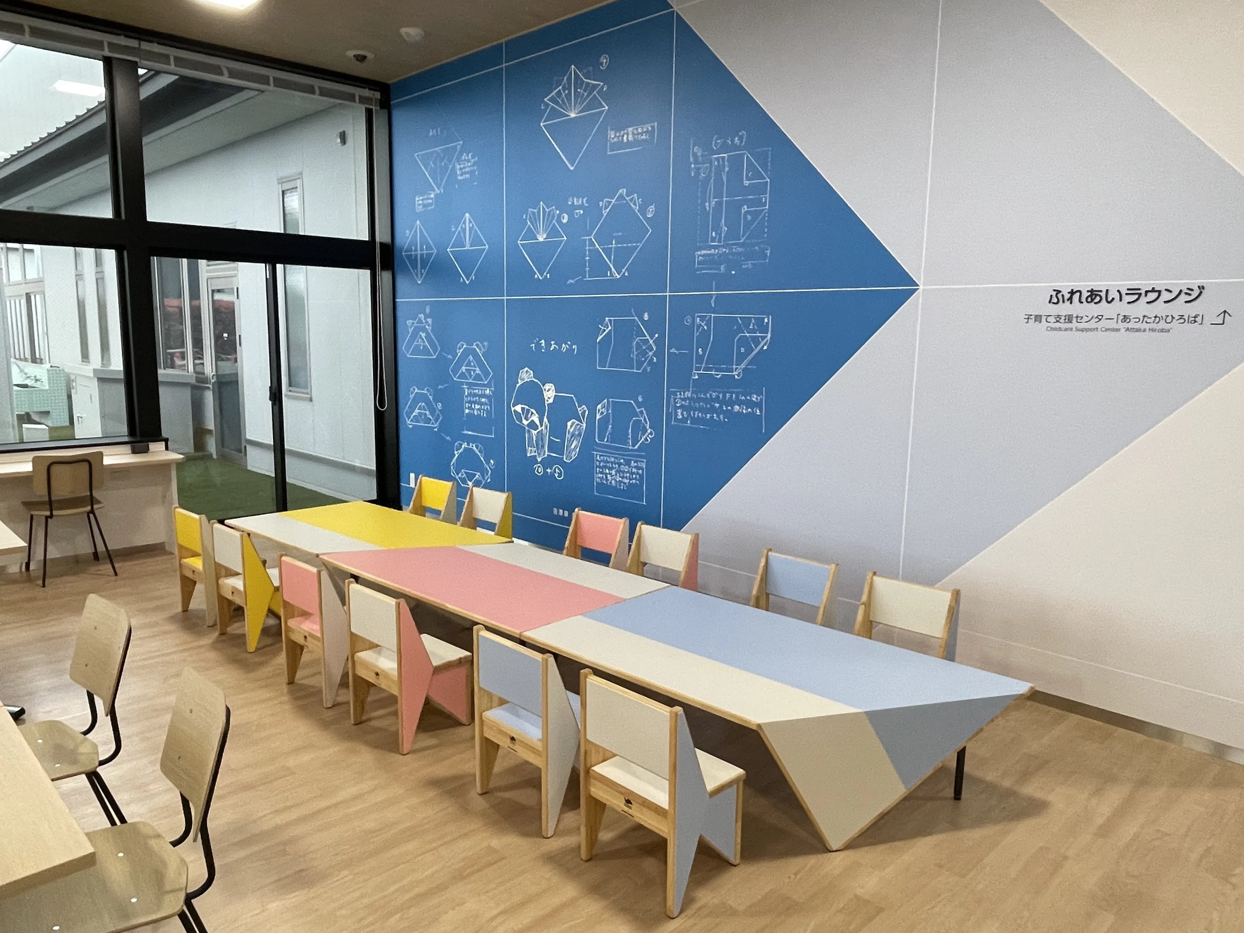 建物には折り紙をモチーフにした看板なども多く設置しています。